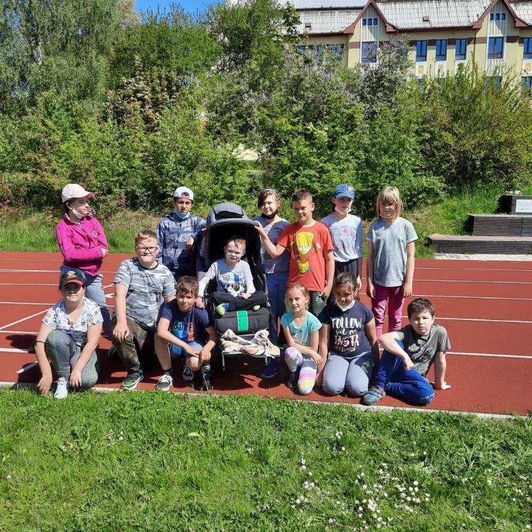Letošní 1. červen jsme oslavili sportem. Rozdělili jsme se do družstev a na atletickém oválu jsme soutěžili v různých disciplínách. Za zdárné plnění sportovních úkolů jsme dostali sladkou odměnu. Na závěr jsme si opekli buřty. „Kila, která jsme shodili ráno, jsme odpoledne úspěšně nabrali zpět.“