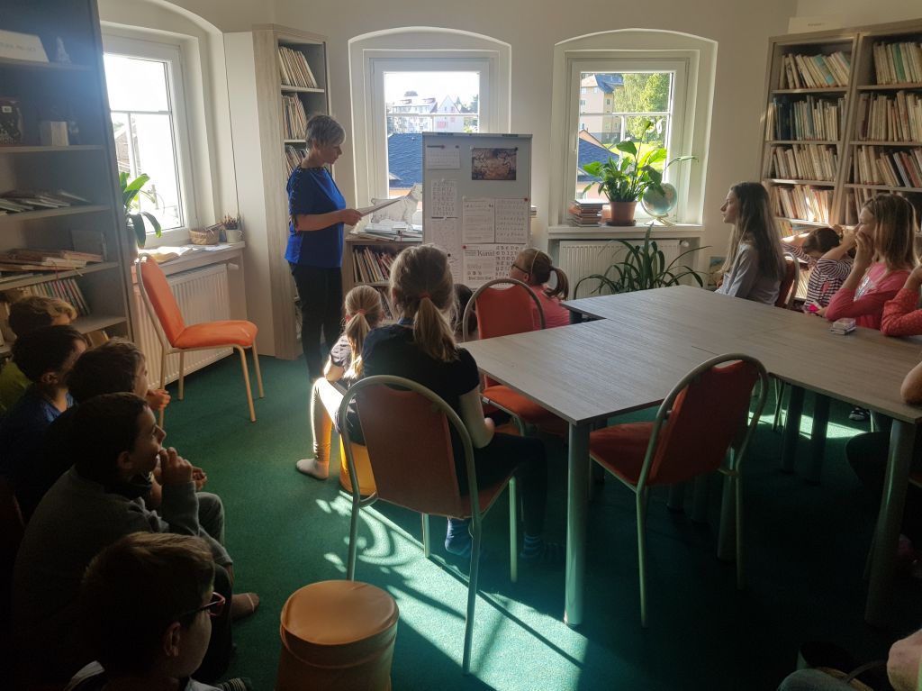 Dne 30. 5. jsme my, žáci 5. A, navštívili místní knihovnu. Tématem besedy byl vznik a vývoj písma. Dozvěděli jsme se, že písmo je staré asi 5000 let. Některé druhy jsme si vyjmenovávali a prohlíželi, například nástěnné malby, piktogramy, obrázkové písmo, slabikové písmo. Také jsme si říkali, že my v Evropě píšeme latinkou.