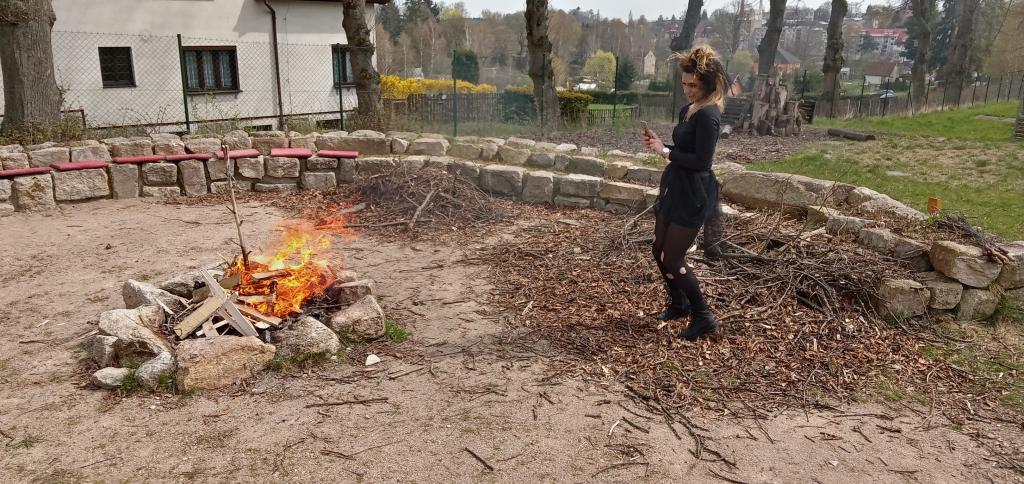 Zaměstnanci školy zakončili čarodějnický den symbolickým upálením čarodějnice a posezením u ohně. Poděkování patří všem za jejich vstřícnost při chystání kostýmů.
