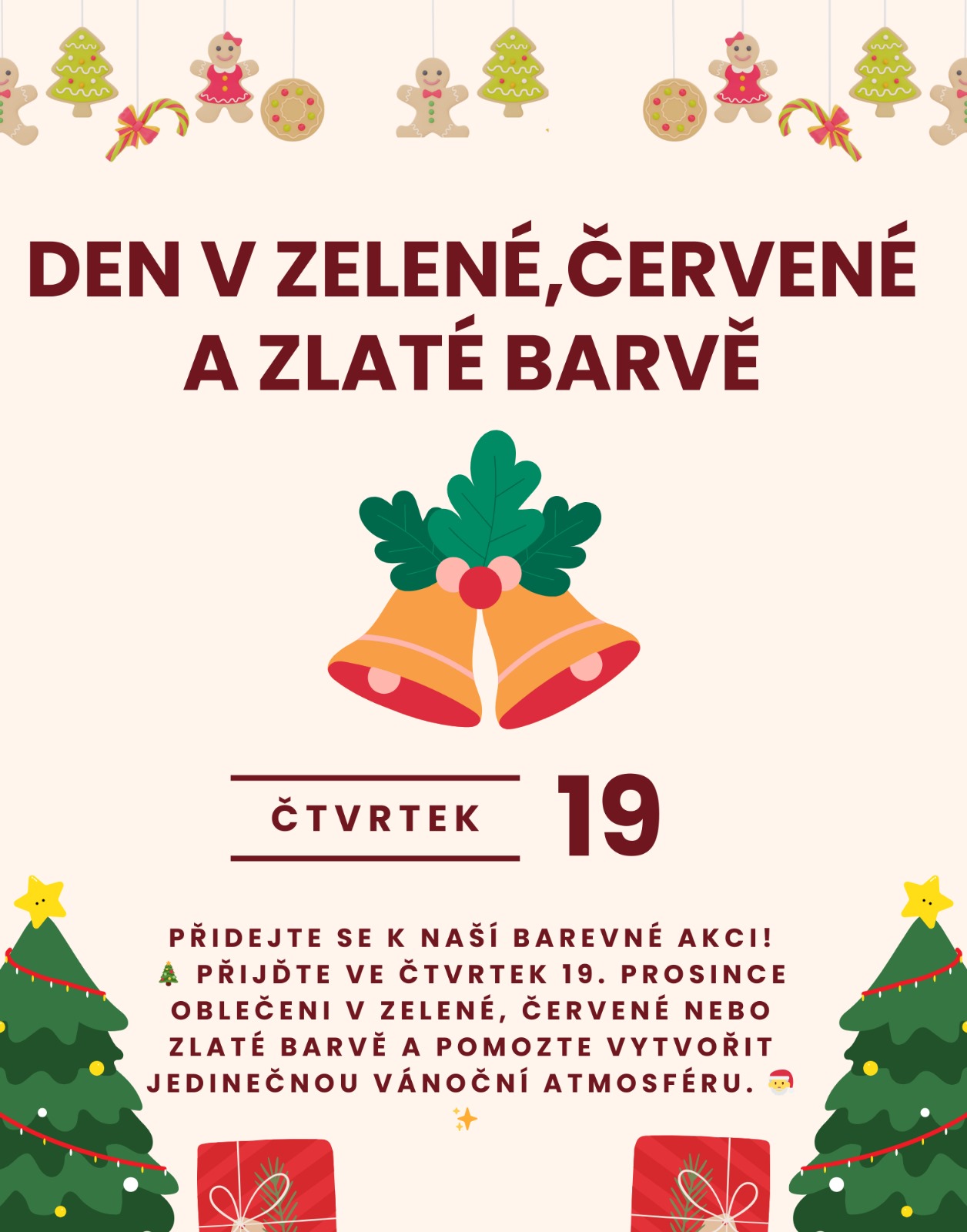 Čtvrtek 19. 12. prohlásil náš žákovský parlament dnem zelené, červené a zlaté barvy.