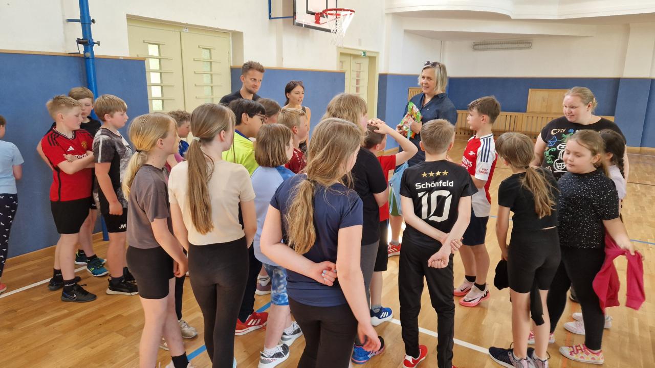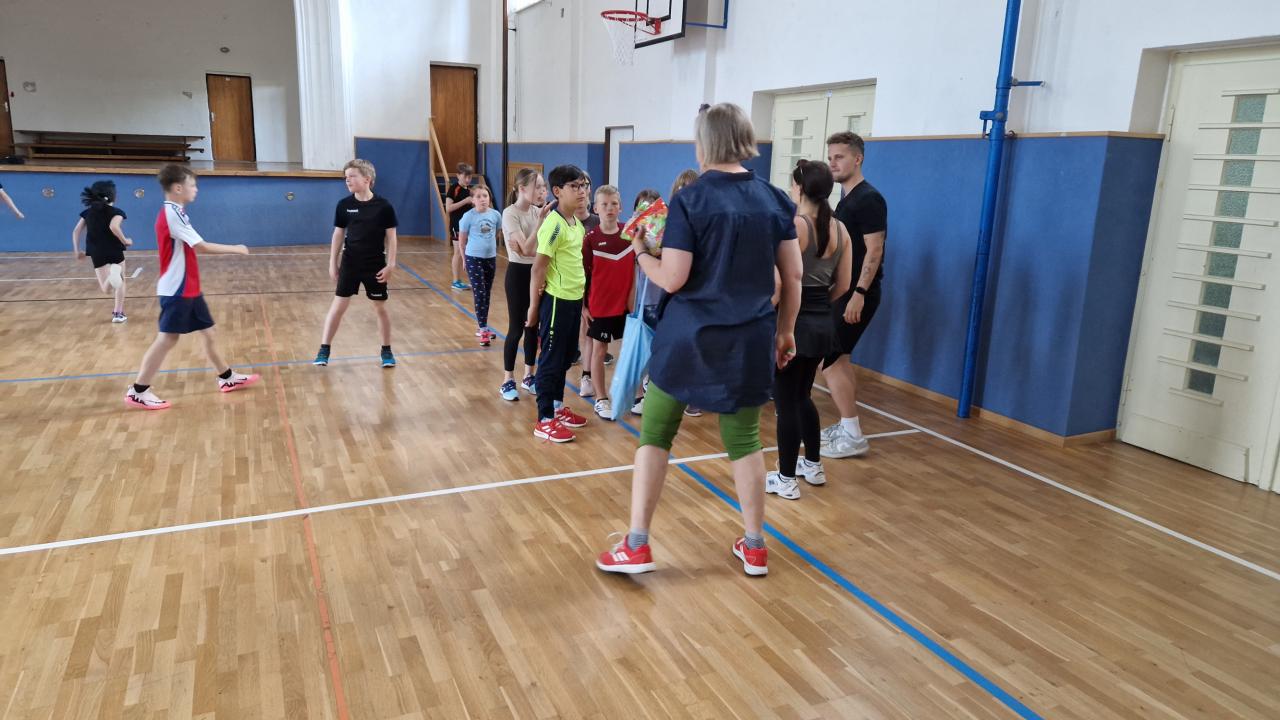 V rámci tohoto dne proběhl také sportovní den našich třeťáků a čtvrťáků se žáky z družební školy v Bad Brambachu. Své síly si změřili ve fotbale a vybíjené. Chvíle mezi sportovním zápolením si žáci zpestřili návštěvou několika stanovišť.