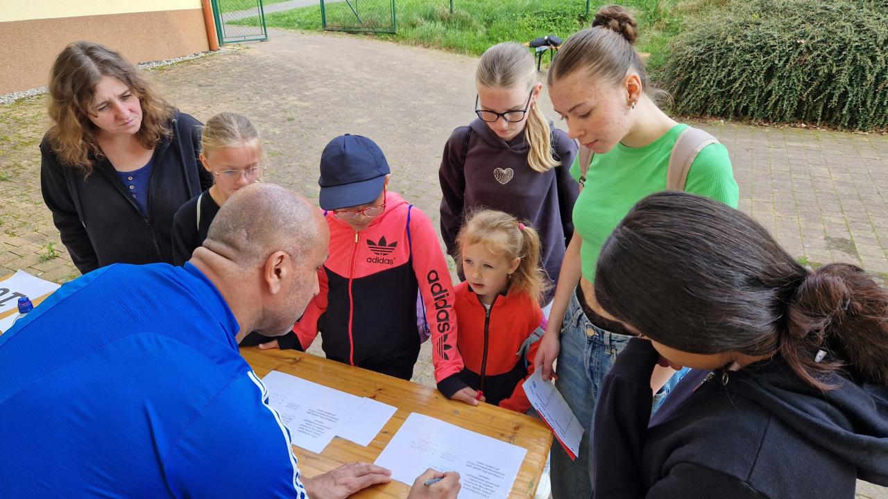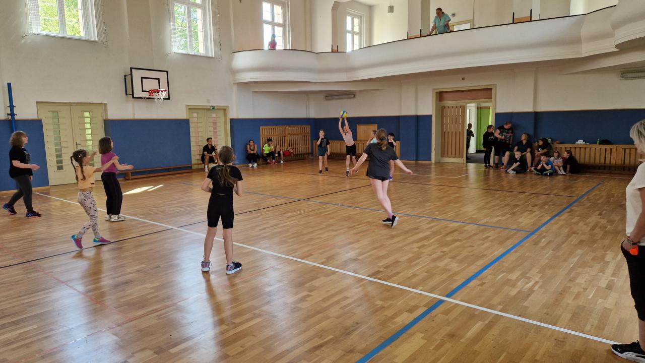 V rámci tohoto dne proběhl také sportovní den našich třeťáků a čtvrťáků se žáky z družební školy v Bad Brambachu. Své síly si změřili ve fotbale a vybíjené. Chvíle mezi sportovním zápolením si žáci zpestřili návštěvou několika stanovišť.