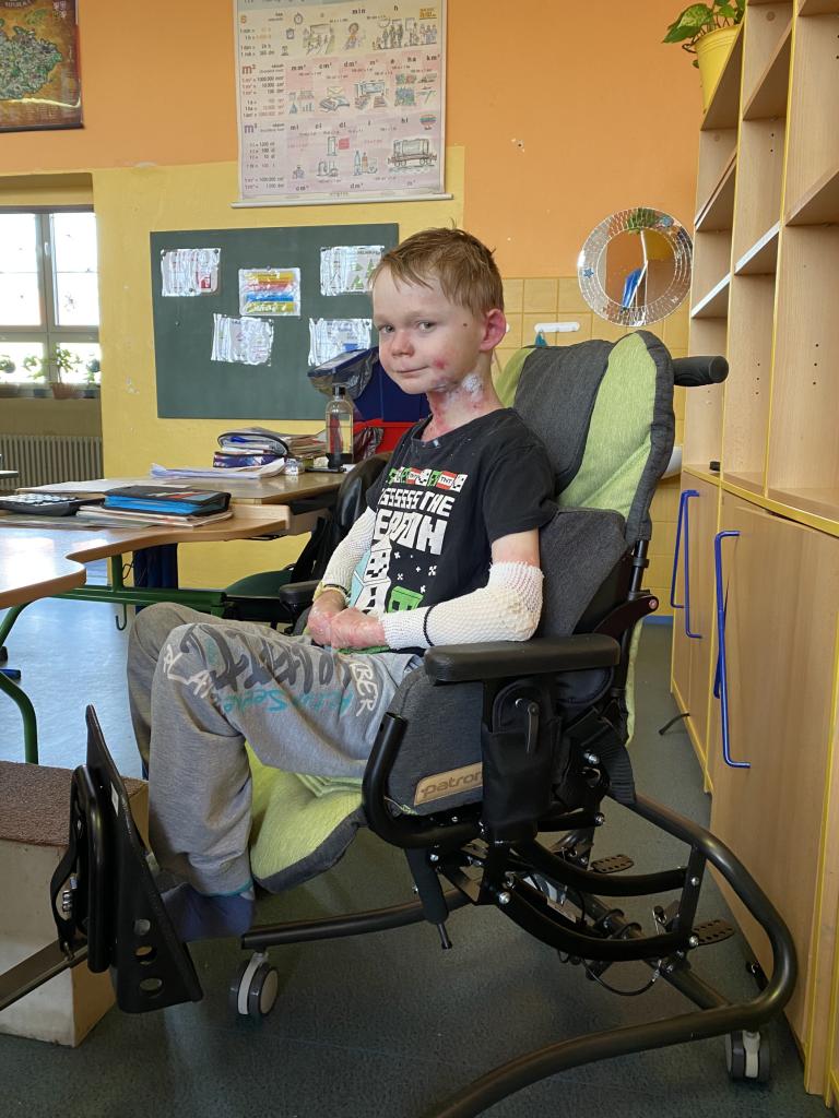 Nicméně se dobrá věc podařila a škola pro Ráďu získala místo původní, dosluhující a rozměrově nevyhovující sedačky sedačku novou, nastavitelnou a polohovací. Protože se nejedná o levnou záležitost, koncová cena sedačky je 60 767,-Kč, bylo třeba hledat zdroj financování.