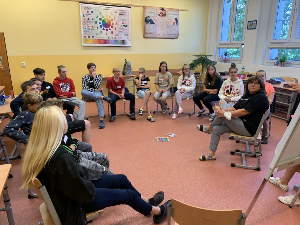 Ne, nebojte se, tento článek není určen jen pro paní Mrázkovou, kterou zdravím v názvu článku. Je to jen věta jedné z aktivit adaptačních kurzů, které u nás proběhly začátkem školního roku, aby zlepšily návrat žáků do školy po distanční výuce. Vedení kurzů se ujal metodik prevence z Pedagogicko-psychologické poradny v Chebu Mgr. Tereza Šulová, která si pro žáky připravila několik zajímavých aktivit.