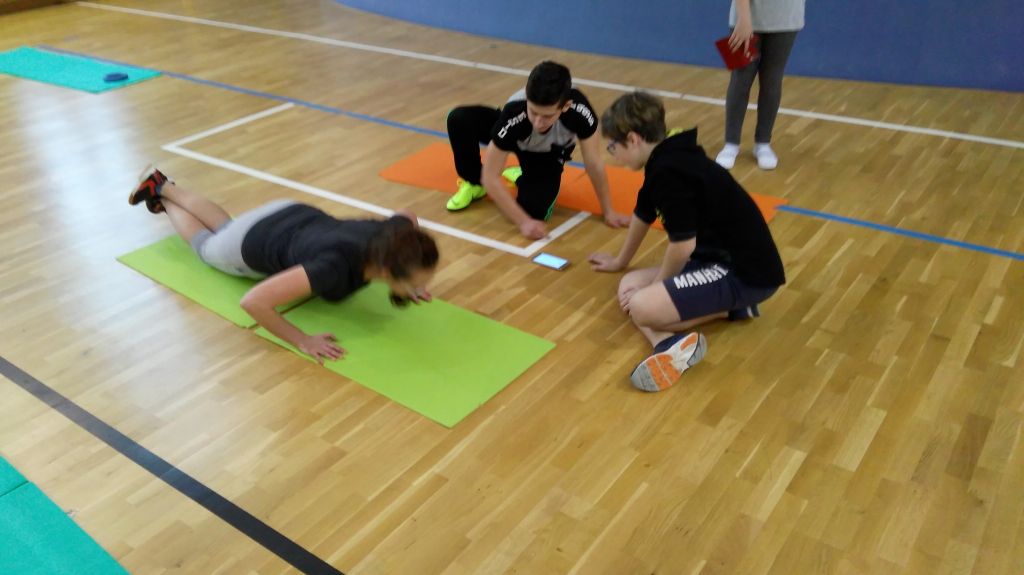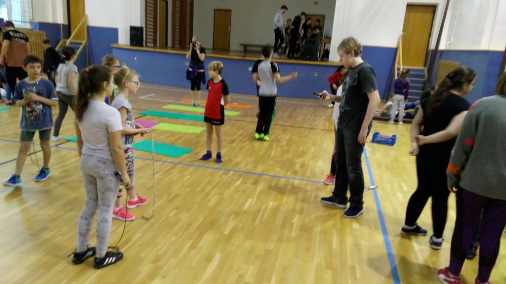 sportovní stanoviště. Vznikla tak skupina 36 žáků, kteří opravdu pracovali jako realizační tým. To jestli je akce povinná nebo dobrovolná téměř nikdo neřešil. Vzbudili tak velký zájem u svých menších spolužáků. Ti se stali diváky a bedlivě sledovali dění v prostorách