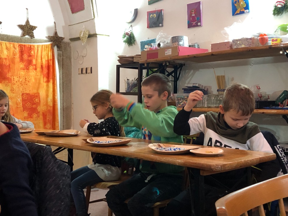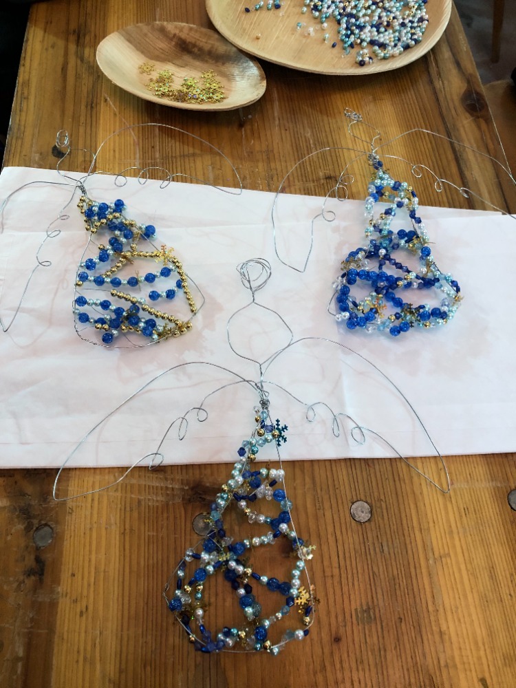 Přišli jsme si vyrobit originální vánoční dekoraci a užít si báječnou vánoční atmosféru. Z nabídky pro letošní tvoření jsme vybrali „Andílka“ z drátu a korálků. Všichni pilně navlékali a dychtivě se snažili o co nejlepší výsledek. A opravdu, andílci se všem náramně povedli a jistě příjemně potěší ty nejbližší.