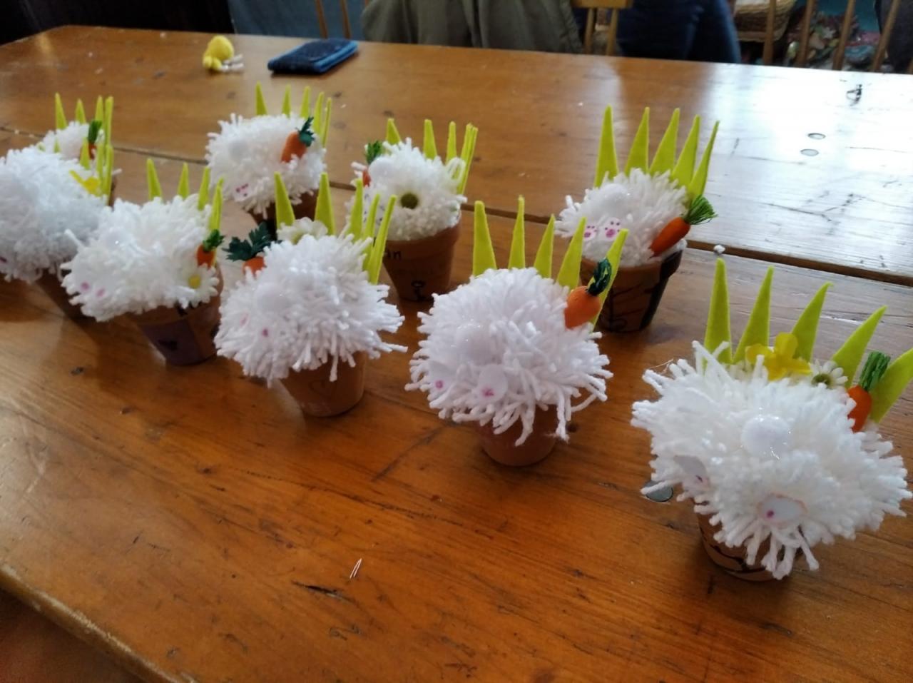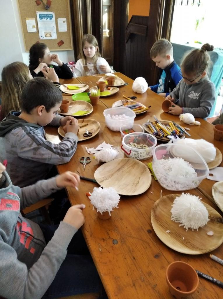 V úterý 28.3. jsme se do Chebu do dílny vypravili, abychom si společně vyrobili velikonočního zajíčka, tedy přesněji – květináč se zajíčkem. A to vůbec ne obyčejného, ale krásně muchlajícího. Práce to nebyla vůbec jednoduchá... Nejprve připravit šablonky pro bambulky.. a potom motat... a motat.... a motat. Dále rozstřihnout vlnu, svázat, slepit, vystřihnout tlapičky, nalepit tlapičky a ocásek na tělíčko, vlepit do květináčku travičku a mrkvičku a zajíček byl na světě. Úplně takhle jednoduché to nebylo, práce bylo opravdu hodně, ale výsledek stál za to. Vznikali totiž krásní zajíčci, noví kámoši. No.. podívejte se sami v naší fotogalerii (na www.zsplesna.cz).