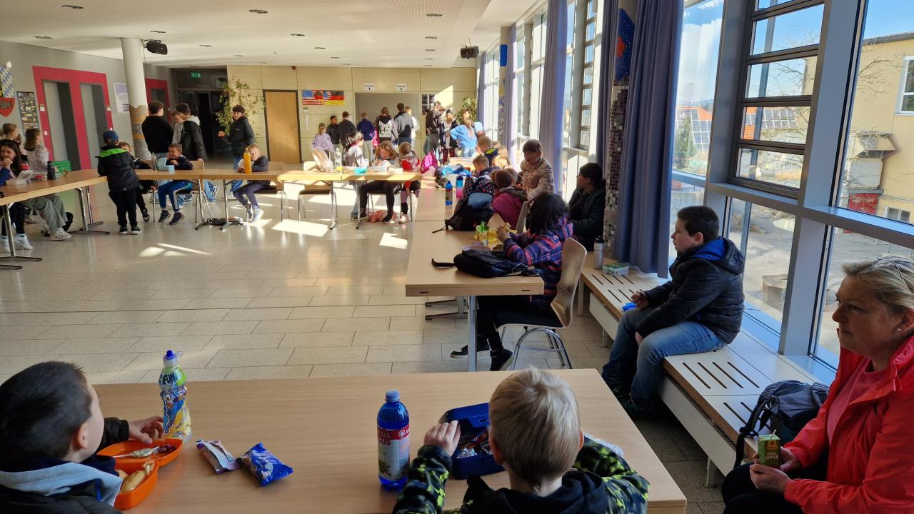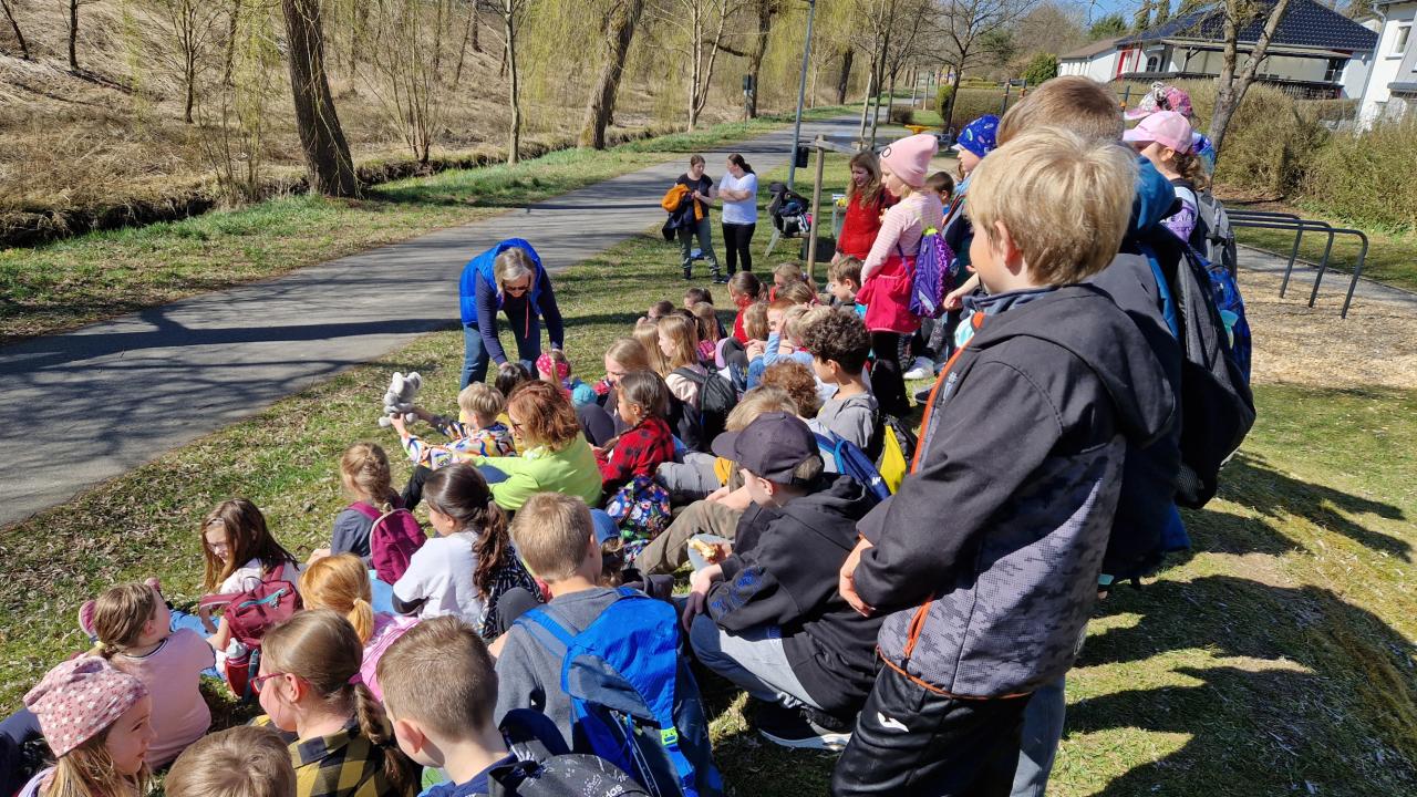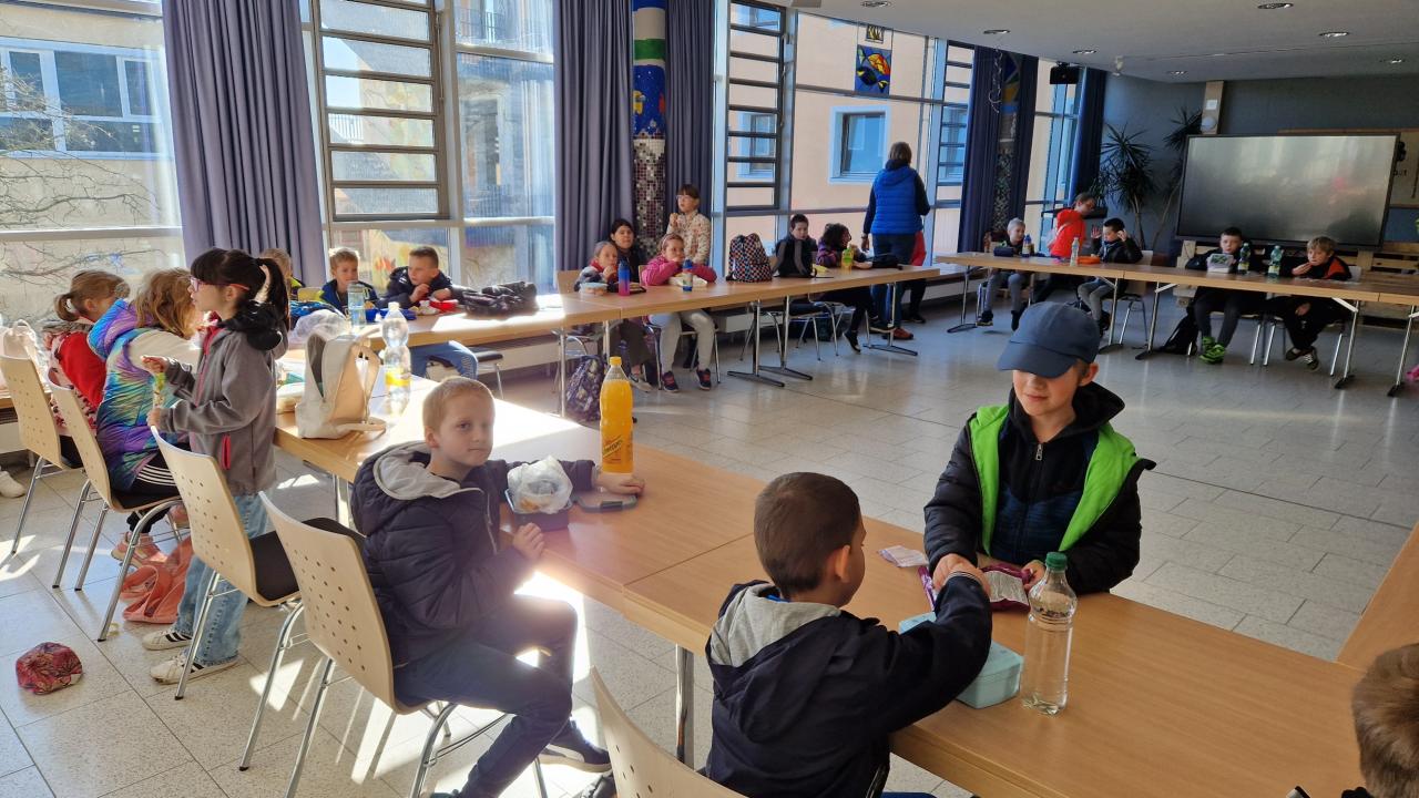 Po zajímavé prohlídce školy dostaly děti chutnou svačinku a vrhly se do plnění úkolů v centru zhruba pětitisícového historického městečka. Děti byly rozděleny do smíšených družstev společně s německými žáky. Úkolem bylo najít různá místa v centru města a odpovídat na otázky. A při plnění úkolů také čile německy i česky komunikovaly.