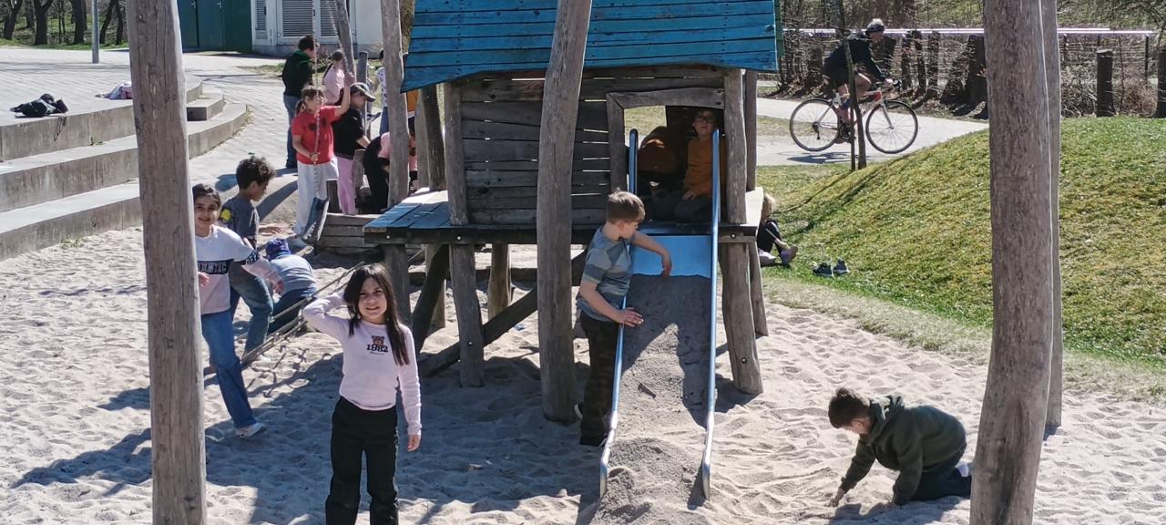 Poté ještě následovalo sportování na parkovém hřišti pod školou a nezbytné focení.