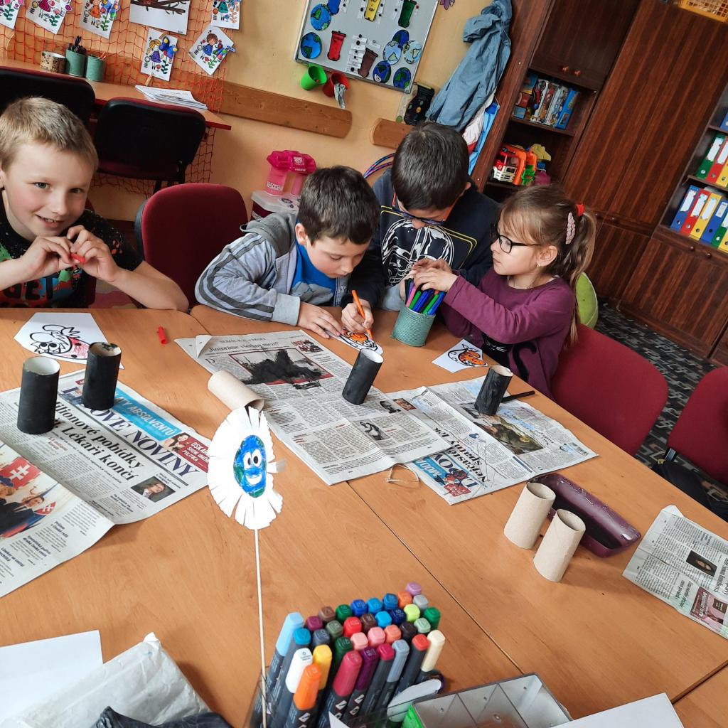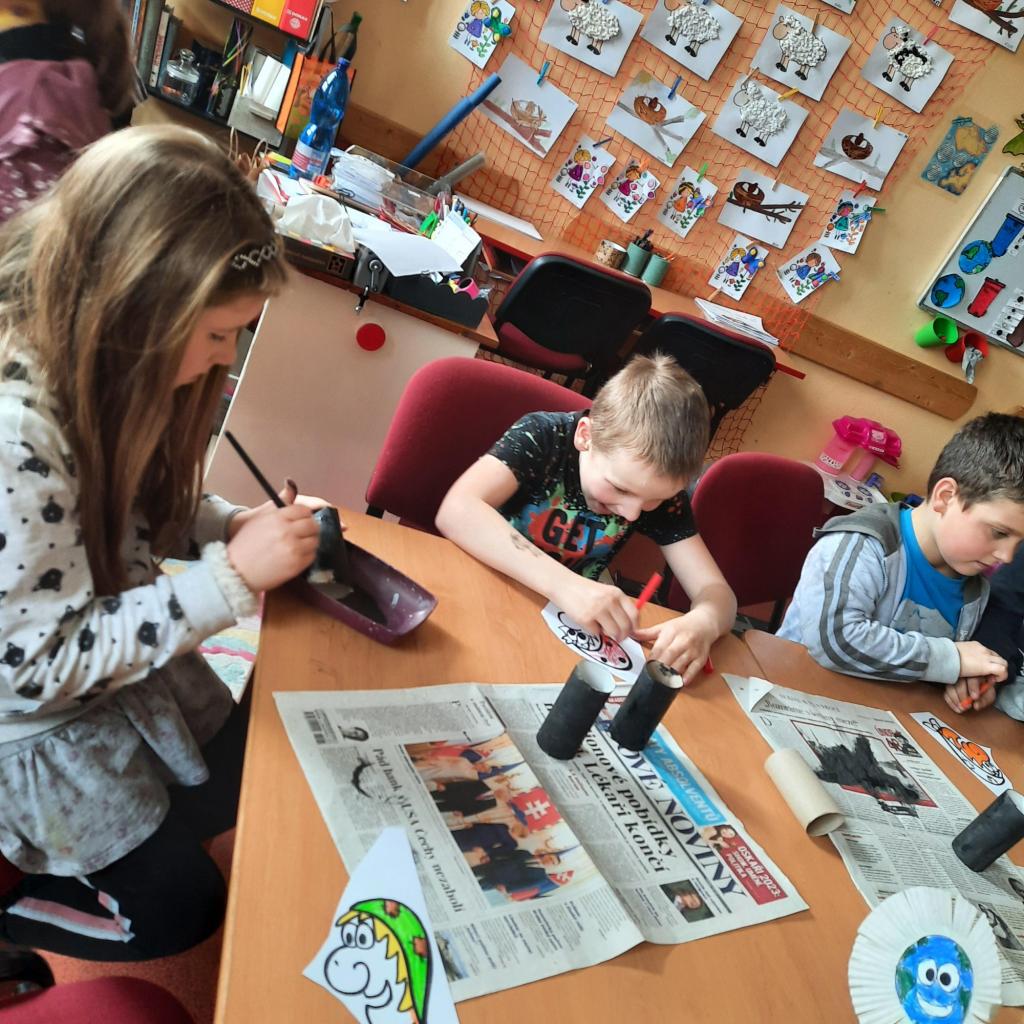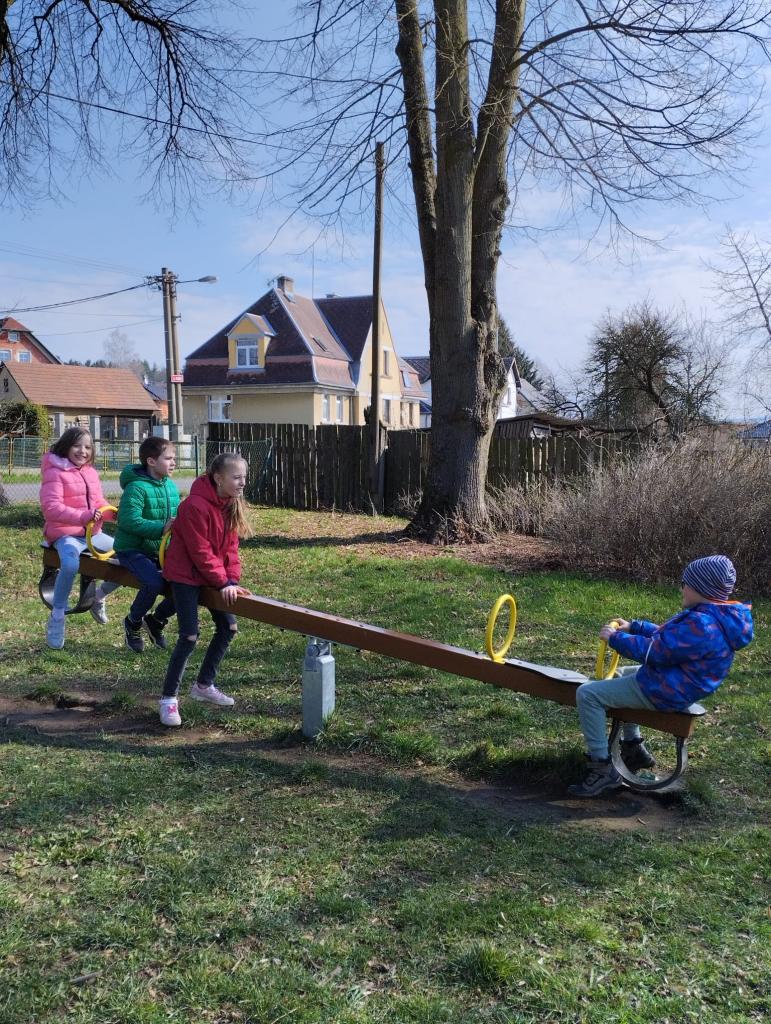 Jaro už konečně převzalo svou vládu, v přírodě se všechno probudilo, obléklo do jarního hávu, tráva už se zelená a jarní sluníčko nás lákalo na hřiště i procházky. Když se objevily deštivé dny, vrátili jsme se v družině k hrám, povídání o včelách a přírodě. První oddělení si zkusilo přírodovědnou soutěž. Nezapomněli jsme ani na Den Země. Říkali jsme si, jak bychom se k naší planetě měli chovat, co dělat a co ne. Také jak správně třídit odpad. Tvořili jsme různé obrázky naší planety.