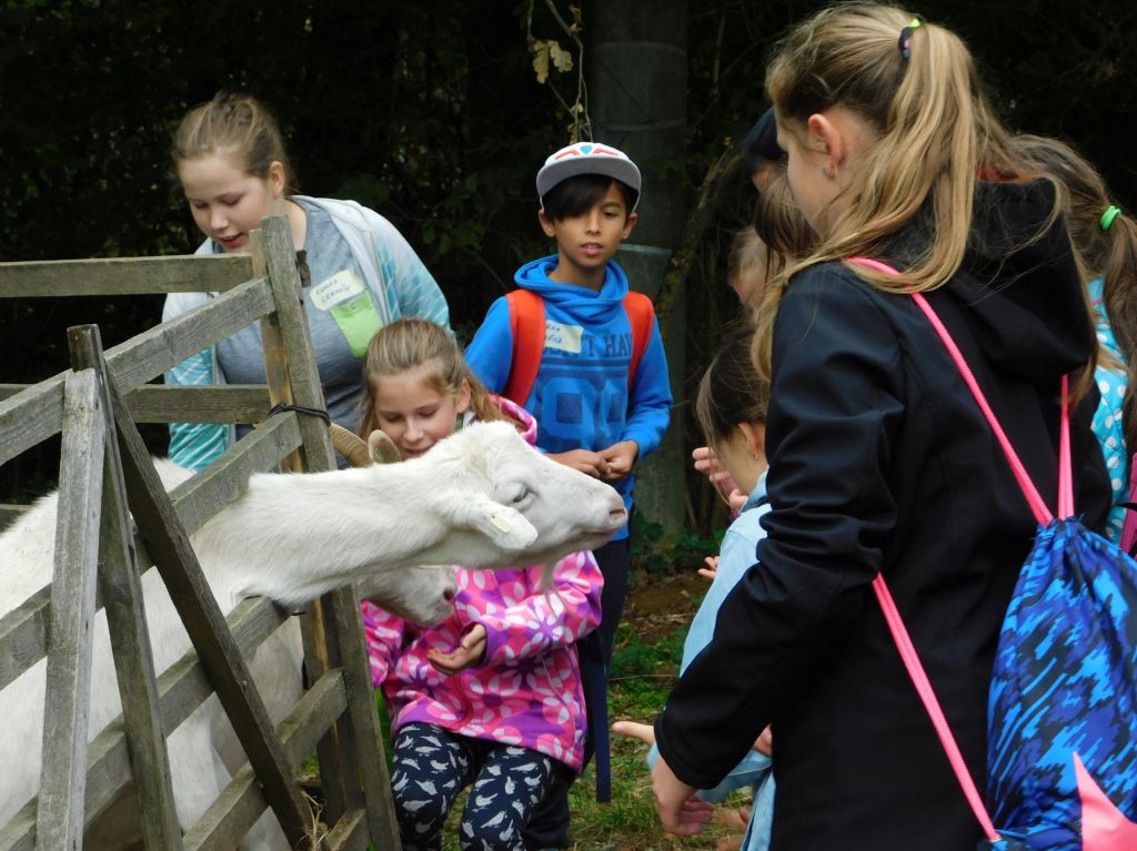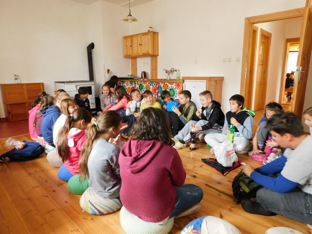 Po hře jsme se rozdělili do 6 týmů a měli jsme dohromady vyplnit potravinový řetězec. Po (pro některé těžkém) cvičení jsme šli ven a hráli jsme další hru – potápníci. Dali jsme si pod bradu nafukovací balónek a museli jsme vzít papírek, který ležel na zemi a přinést ho na start bez toho, aby nám spadl nafukovací balónek. Ten, komu spadl, musel jít zpátky na start a buď nafukovací balónek předal dalšímu v týmu nebo šel znovu. Tým, který měl na konci nejvíce papírků vyhrál. Po zábavné hře jsme šli k rybníku a měli jsme lovit podvodní živočichy. Zapsali jsme živočichy, které jsme našli do klíče a nakreslili jsme je. Vlasta nám řekla, že všichni dohromady našli pět druhů podvodních živočichů: motýlice, splešťule blátivá, larva šídla, pijavice a larva vážky. Vlasta nám řekla, že se půjdeme podívat na ovce a kozy. Dávali jsme jim suchý chléb a mrkev. To byl celý náš program. Cesta trvala zase tak dvě hodiny. Přijeli jsme kolem 15.20. V Prusinách se mi moc líbilo a věřím, že sdružení Ametyst se podaří ze školy udělat budovu vhodnou pro jejich programy.