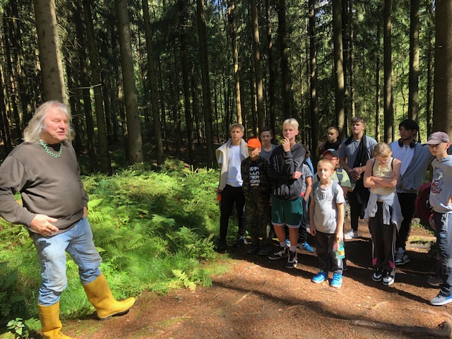 Měl pro nás připravenou přednášku o místě, kde jsme stáli. O Smrčinách, o žule, o sopkách, radioaktivitě, radonu. Seznámili jsme se s geologickou mapou ČR, měřením radonu, teplotou vody a s přípravou dalších pokusů.