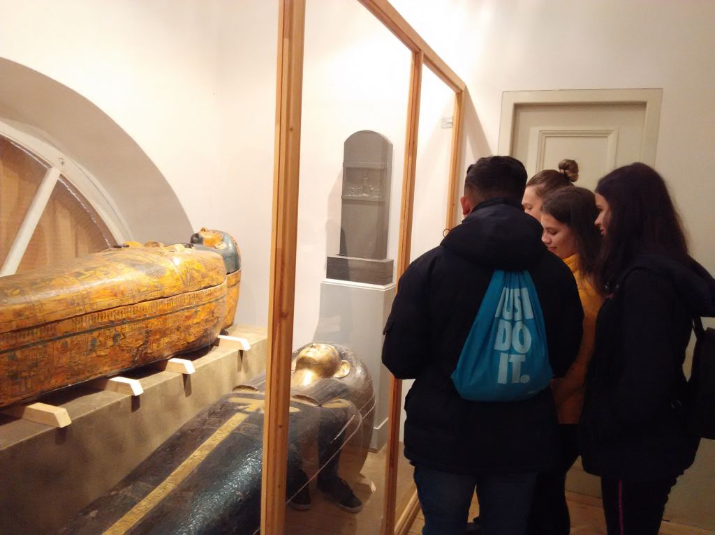 např. pompadúrka (kabelka madame de Pompadúr) nebo dva egyptské sarkofágy. Všechny nás ohromila obrovská hodovní místnost, v níž nám paní lektorka pustila i dobovou hudbu, takže jsme se mohli lépe vžít do kůže tehdejší diplomatické návštěvy.