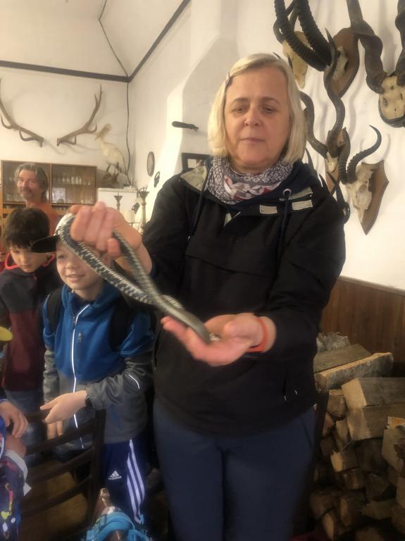 3  S dětmi jsme navštívili infocentrum, kde pro nás byla připravena prezentace o zde žijících hadech, ze které byly děti nadšeny. Aby toho nebylo málo, tak si děti mohly užovku stromovou a jiné druhy hadů prozkoumat z blízka ve svých vlastních rukou.4