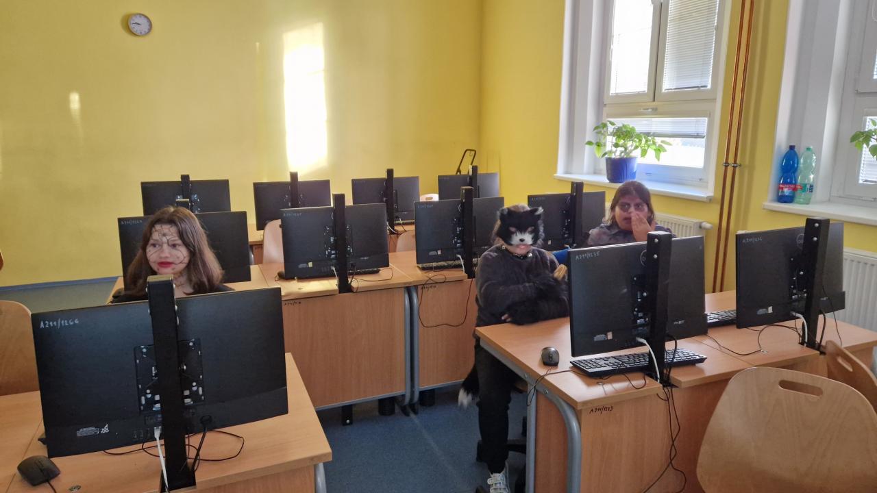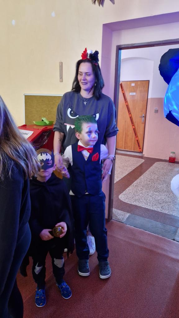 Během dopoledne po škole chodila porota, kterou tvořil náš pan školník a paní družinářka. Ti společně s učiteli a asistenty diskutovali o nejlepších maskách.
