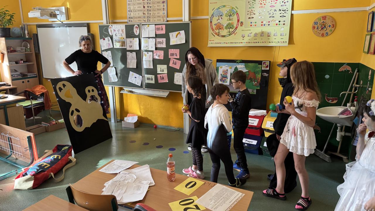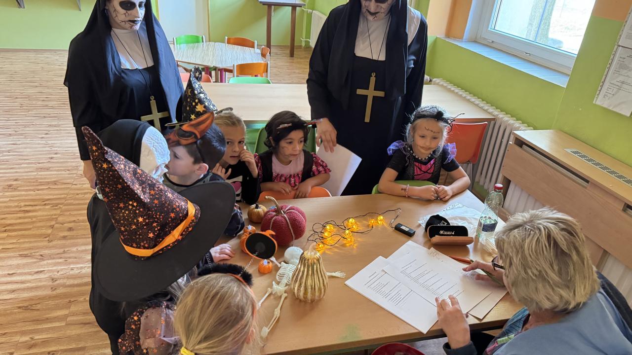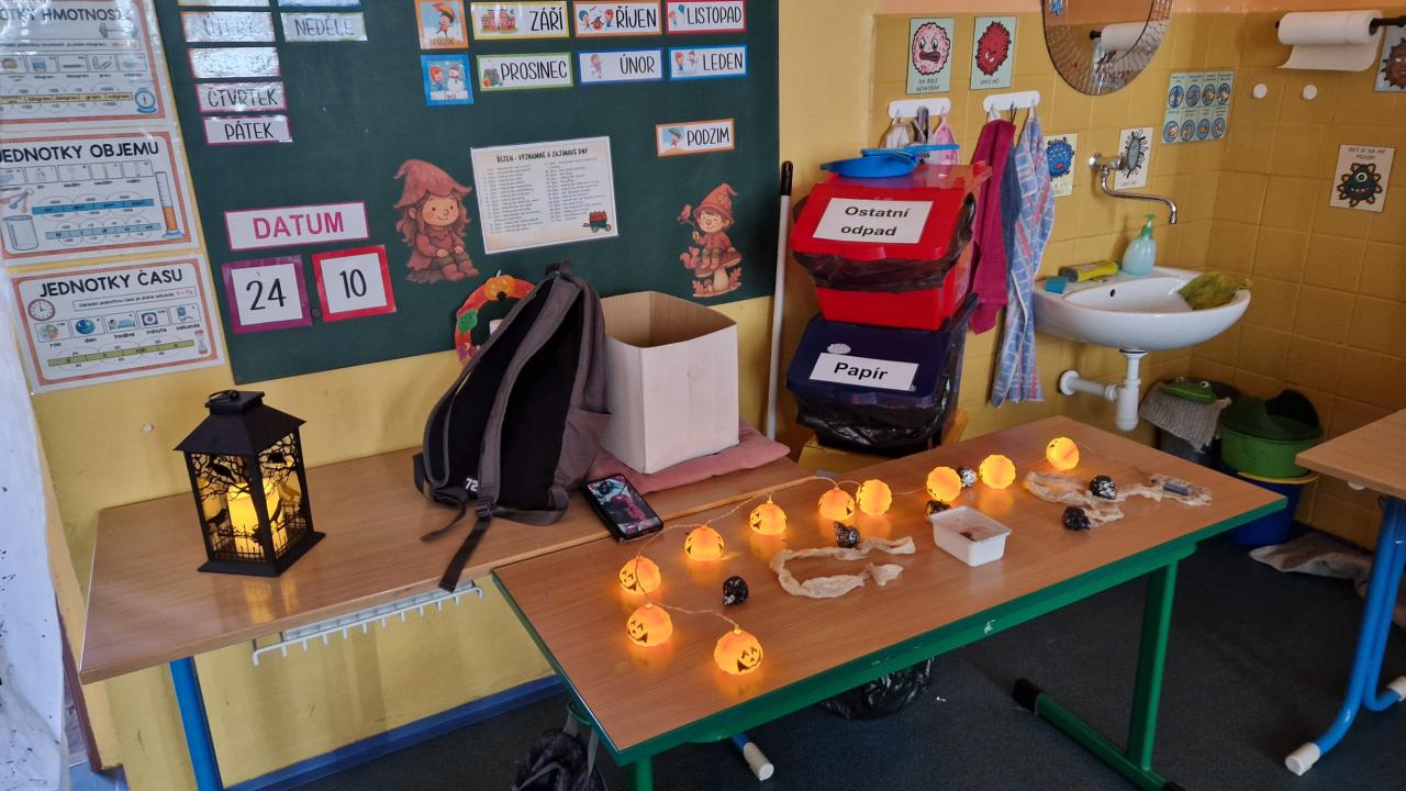 Děkujeme také mateřské školce a jejím učitelkám za zapůjčení spousty krásných halloweenských dekorací, které dodaly celé akci kouzelnou atmosféru. Tyto dekorace domluvila paní asistentka Radka Kočálková, které patří velké díky za sehnání a domluvení jejich zapůjčení.
