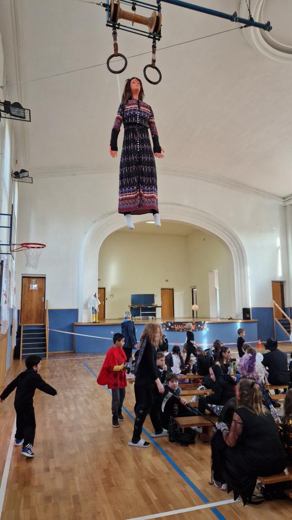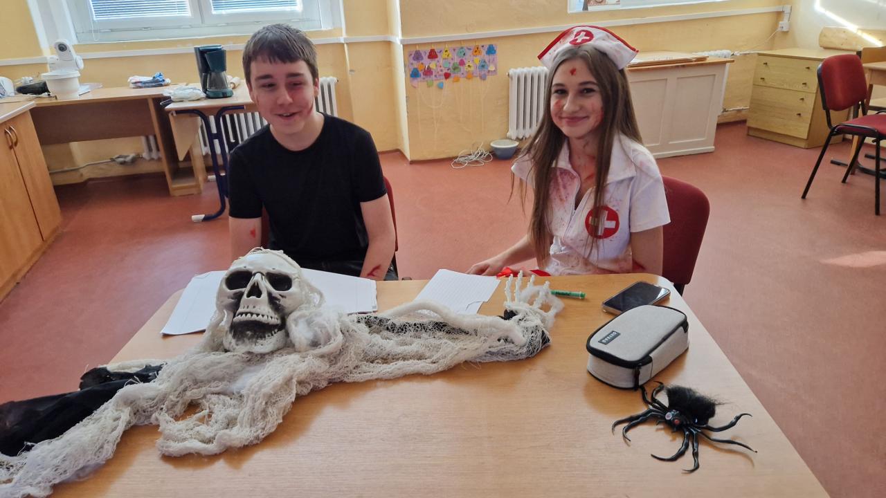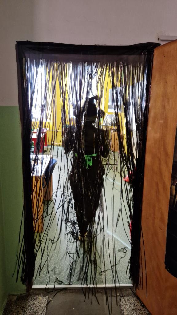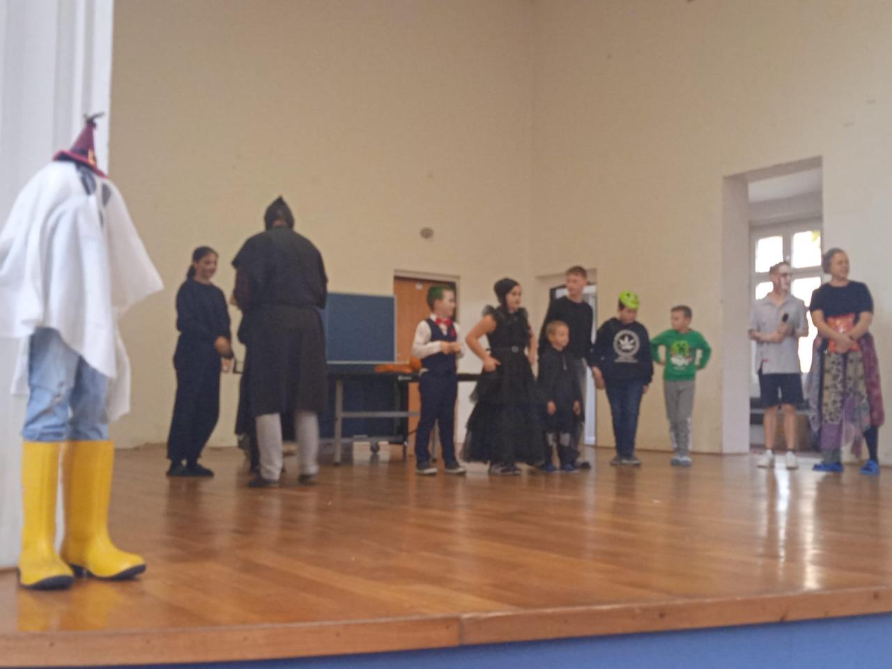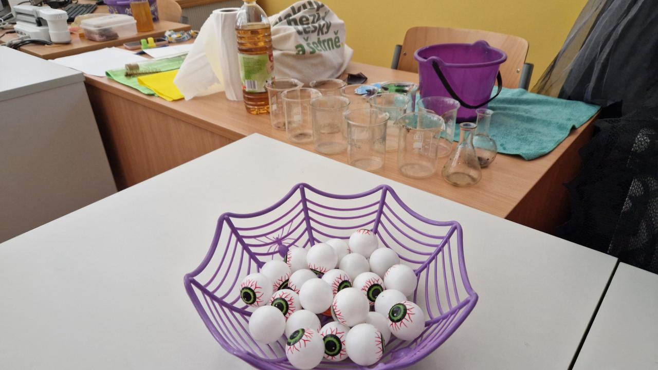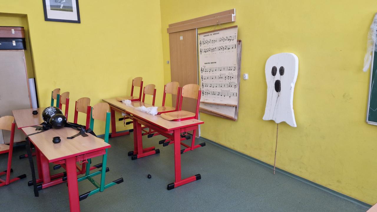 Ráno jsme se všichni sešli ve vyzdobené tělocvičně, kde nás čekala tajemná atmosféra, strašidelné dekorace a halloweenská hudba. Po rozřazení všech žáků do osmnácti týmů následoval krátký úvod do akce od pana ředitele a ode mě.