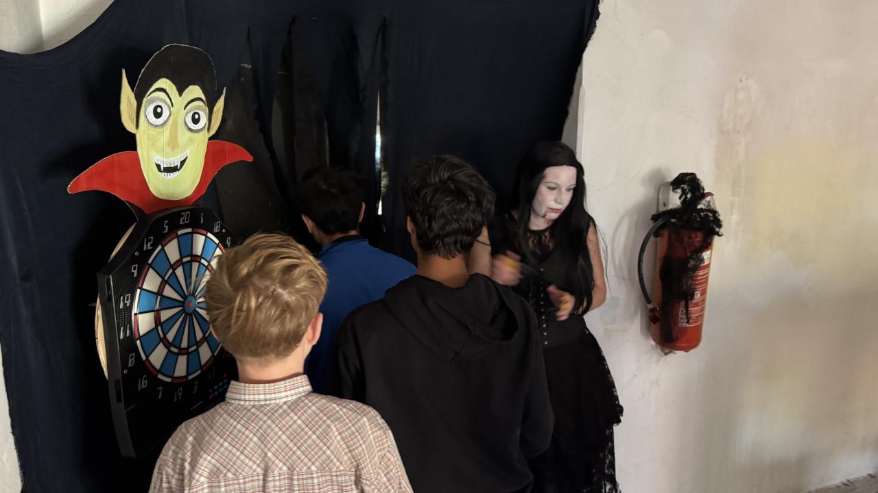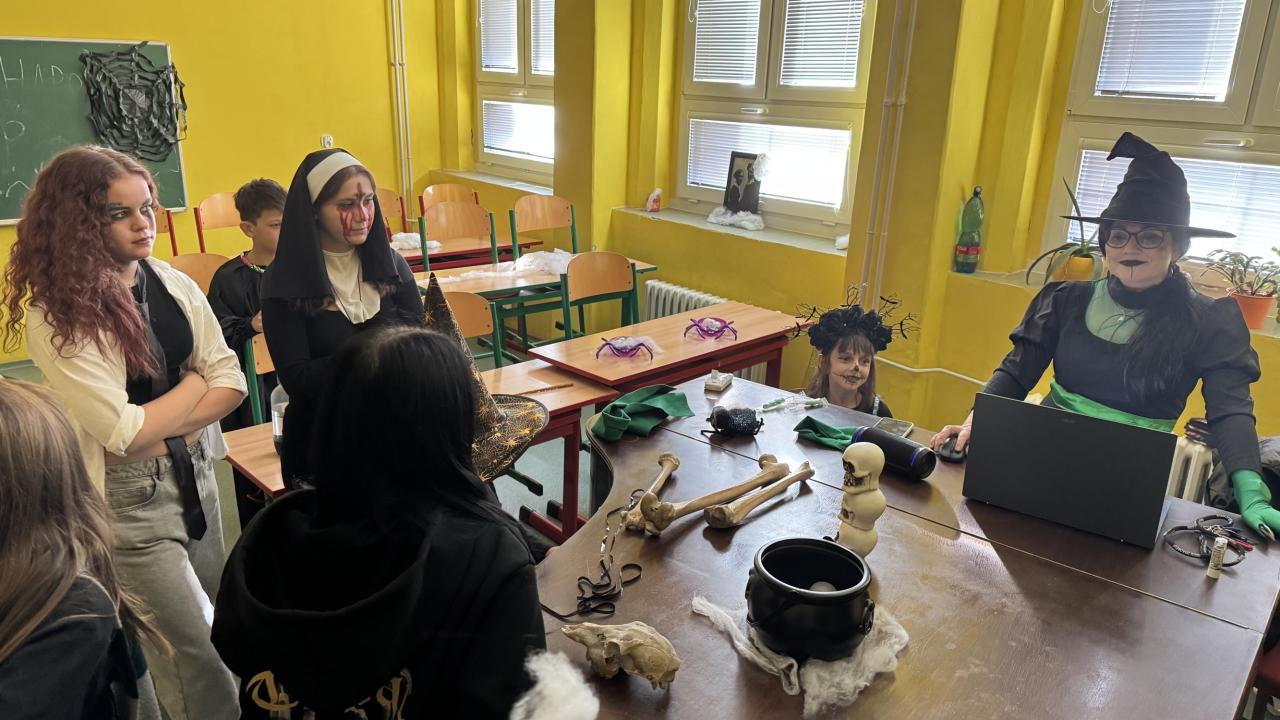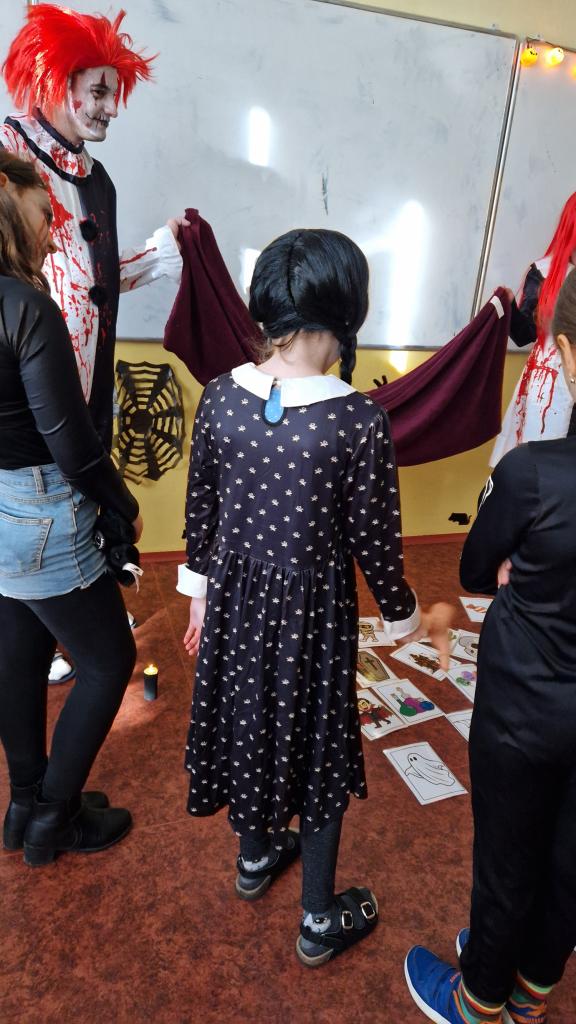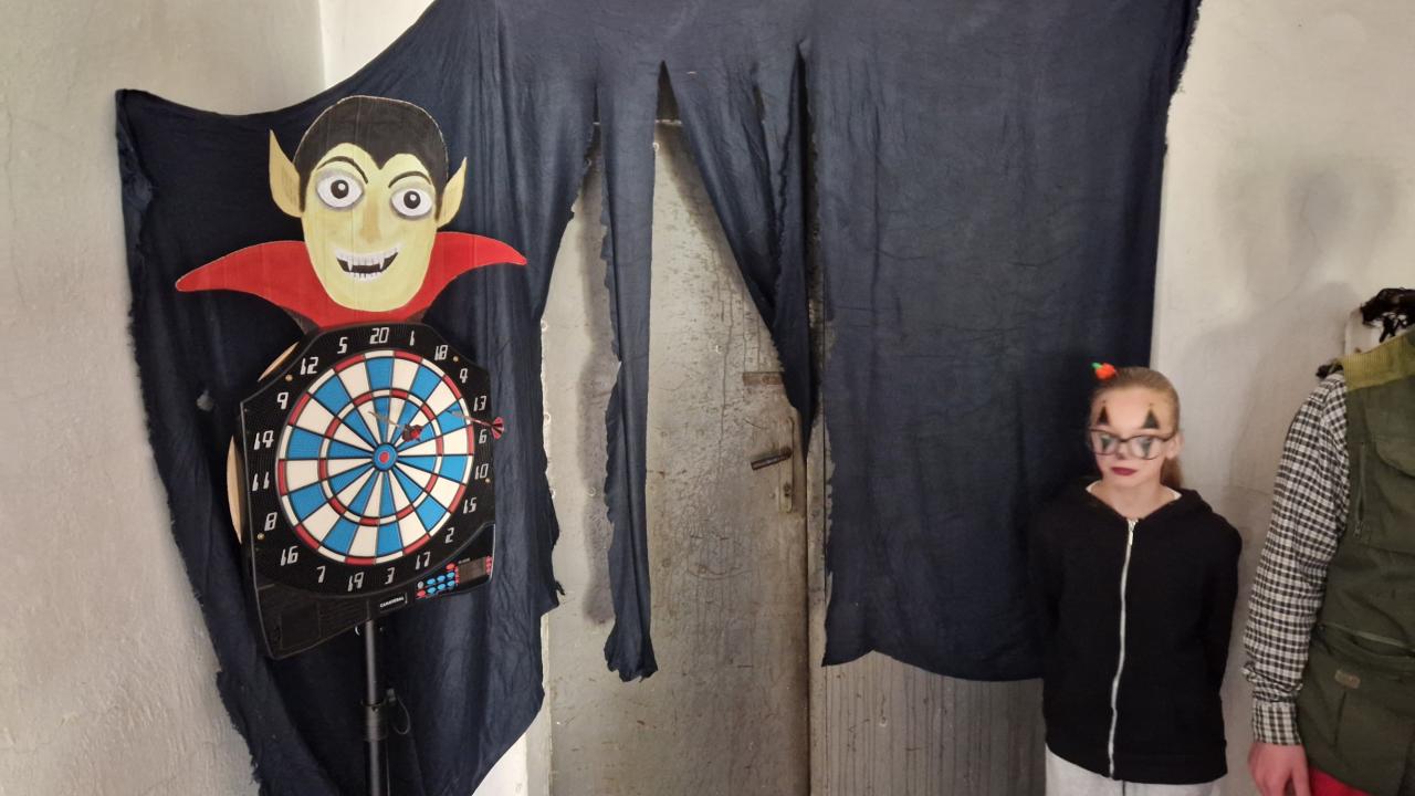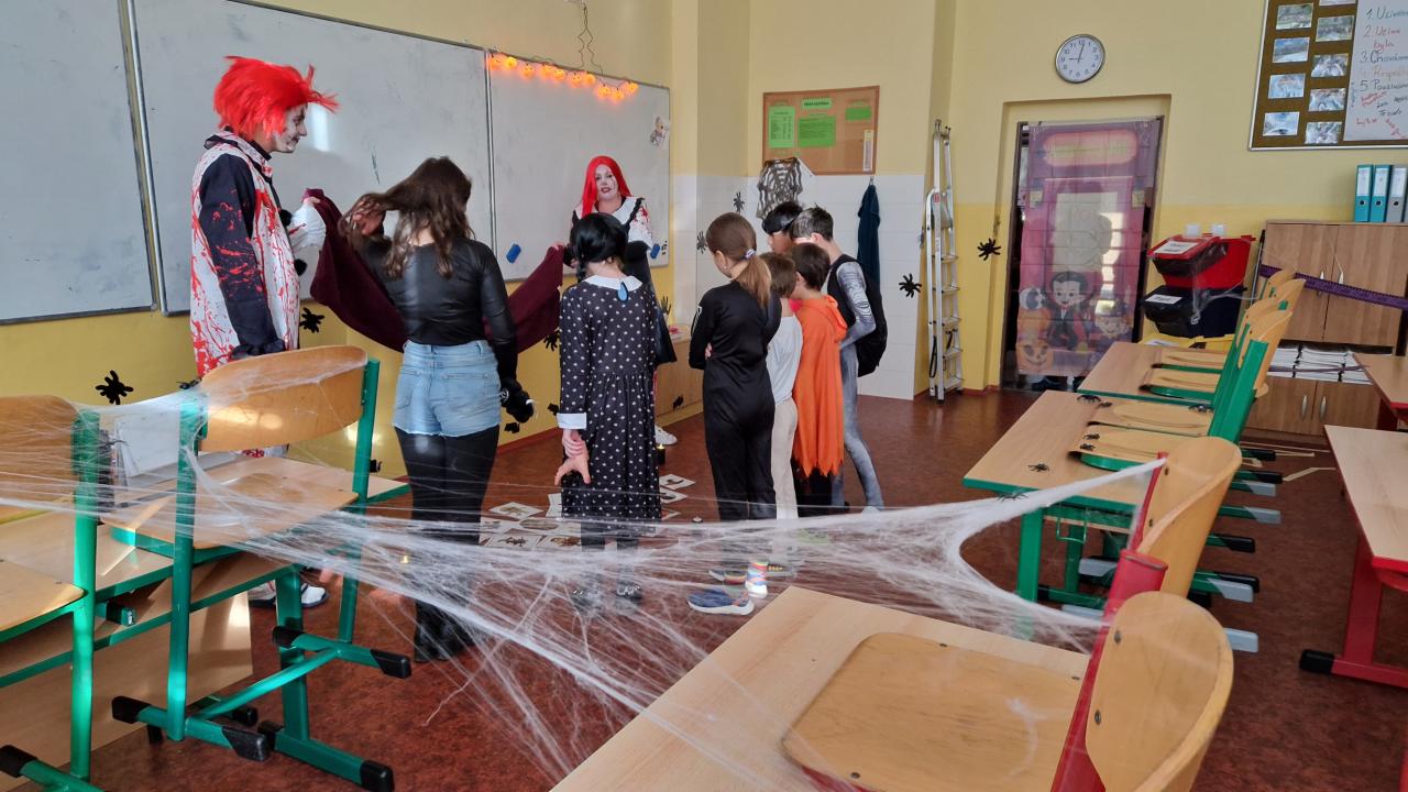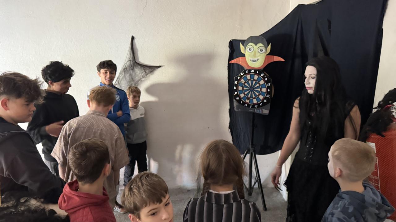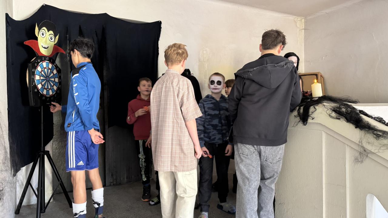 Týmy se vydaly na různá stanoviště po celé škole – od sklepa až po půdu, kde na ně čekal i duch školy, který se objevuje jen výjimečně. :) Na stanovištích plnili účastníci zábavné a někdy i napínavé úkoly – například pantomimu, hod šipkami, míchání kouzelných lektvarů nebo poznávání písní z halloweenských a strašidelných filmů.
