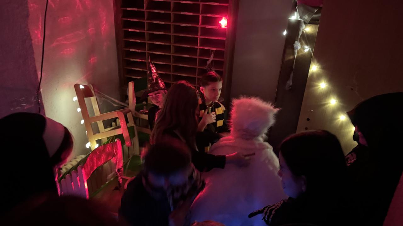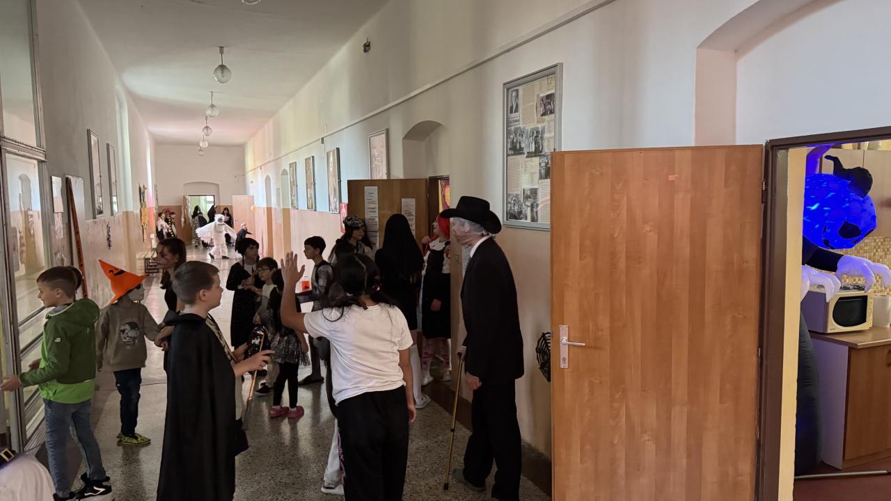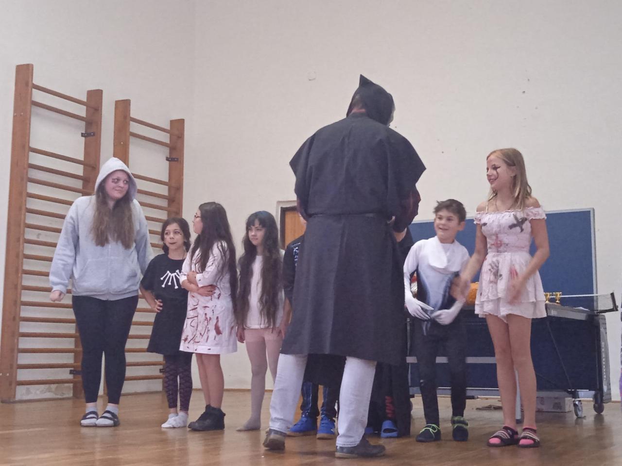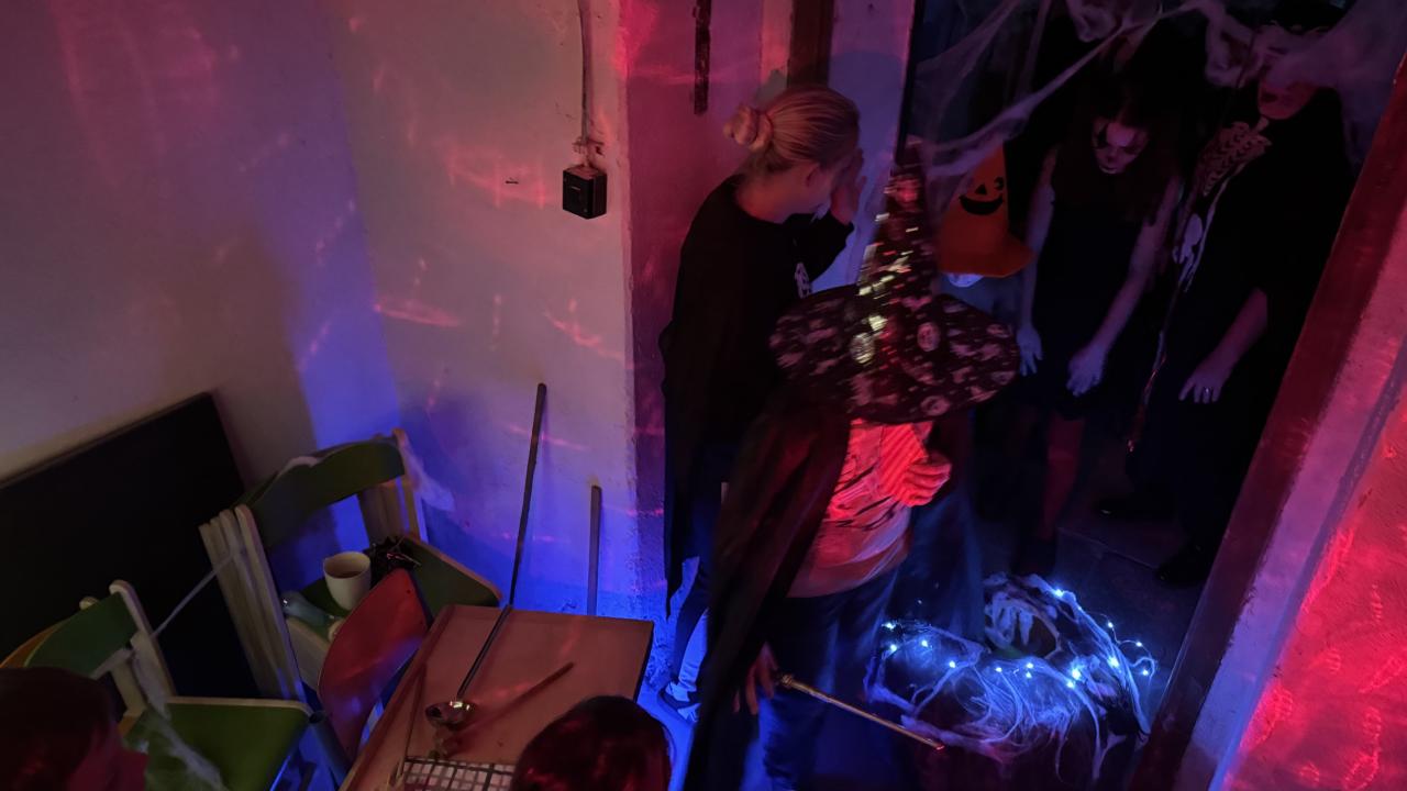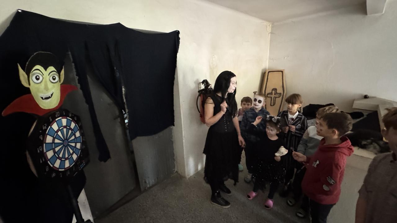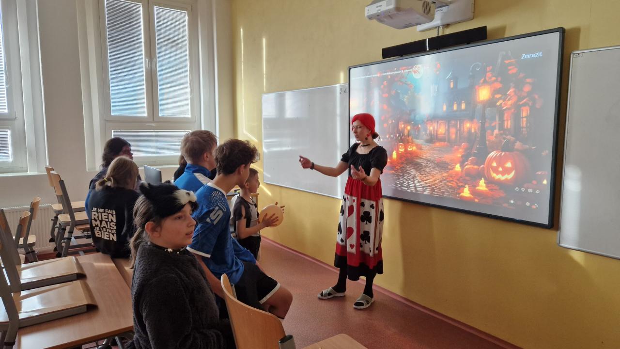 Týmy se vydaly na různá stanoviště po celé škole – od sklepa až po půdu, kde na ně čekal i duch školy, který se objevuje jen výjimečně. :) Na stanovištích plnili účastníci zábavné a někdy i napínavé úkoly – například pantomimu, hod šipkami, míchání kouzelných lektvarů nebo poznávání písní z halloweenských a strašidelných filmů.