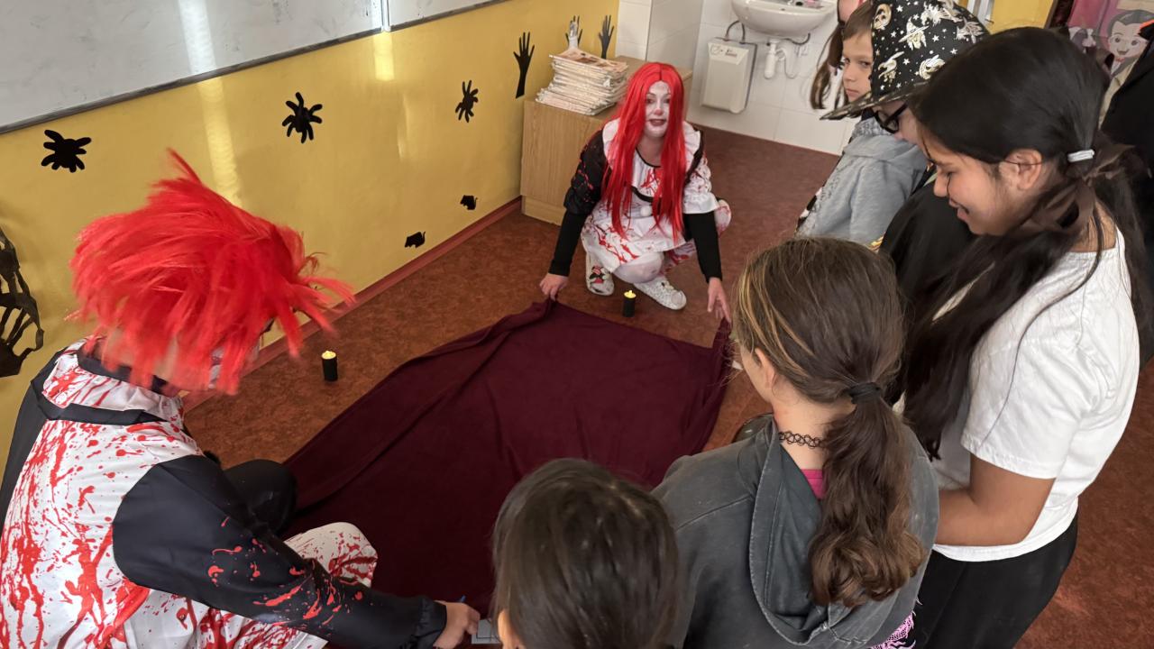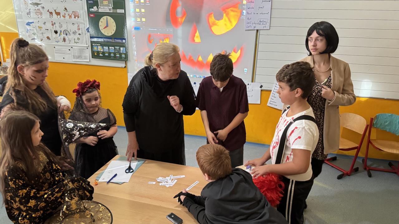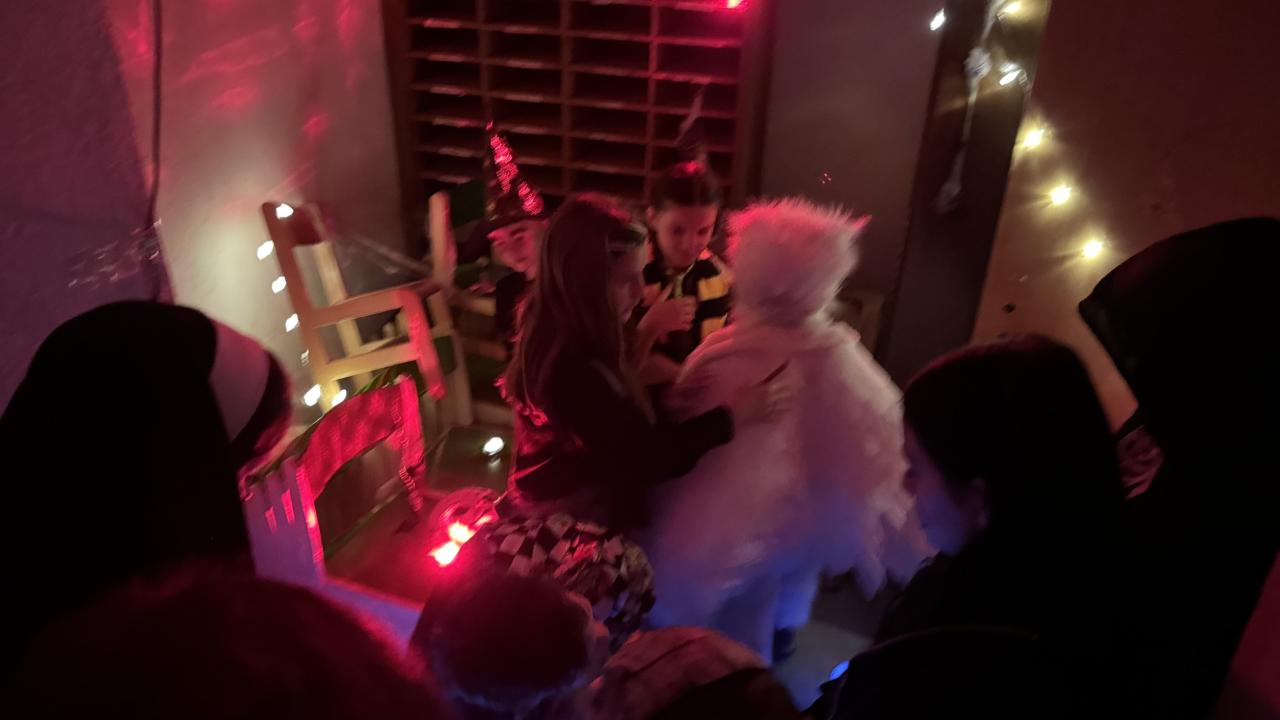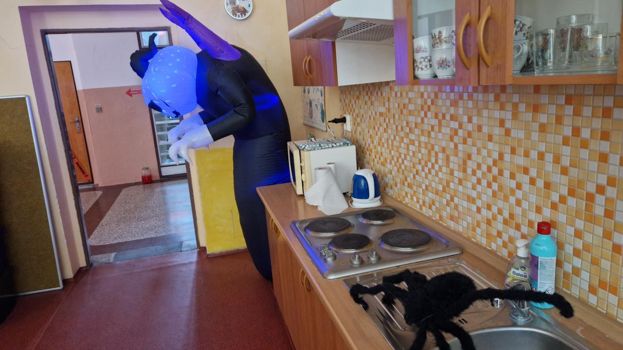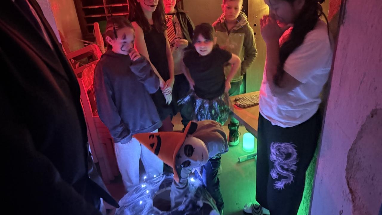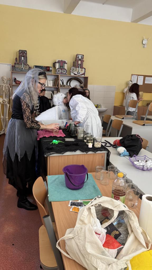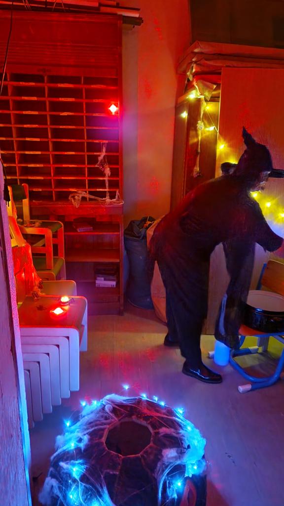 Týmy se vydaly na různá stanoviště po celé škole – od sklepa až po půdu, kde na ně čekal i duch školy, který se objevuje jen výjimečně. :) Na stanovištích plnili účastníci zábavné a někdy i napínavé úkoly – například pantomimu, hod šipkami, míchání kouzelných lektvarů nebo poznávání písní z halloweenských a strašidelných filmů.