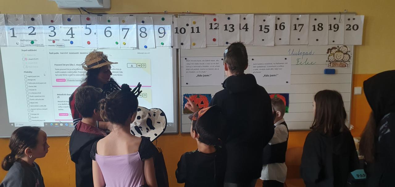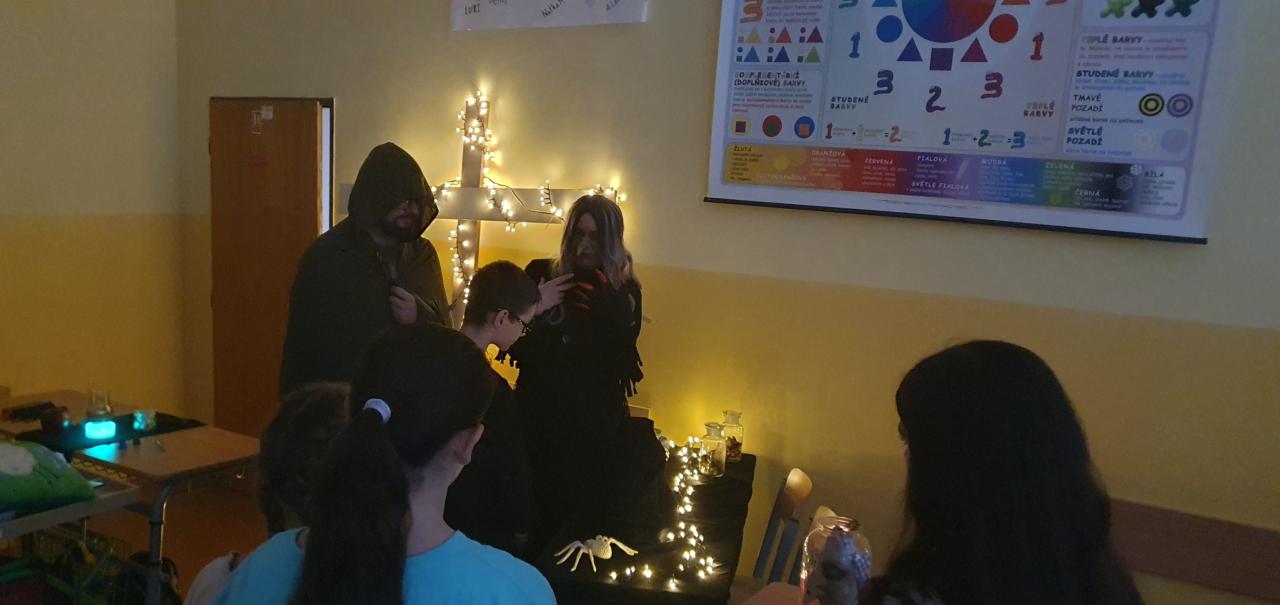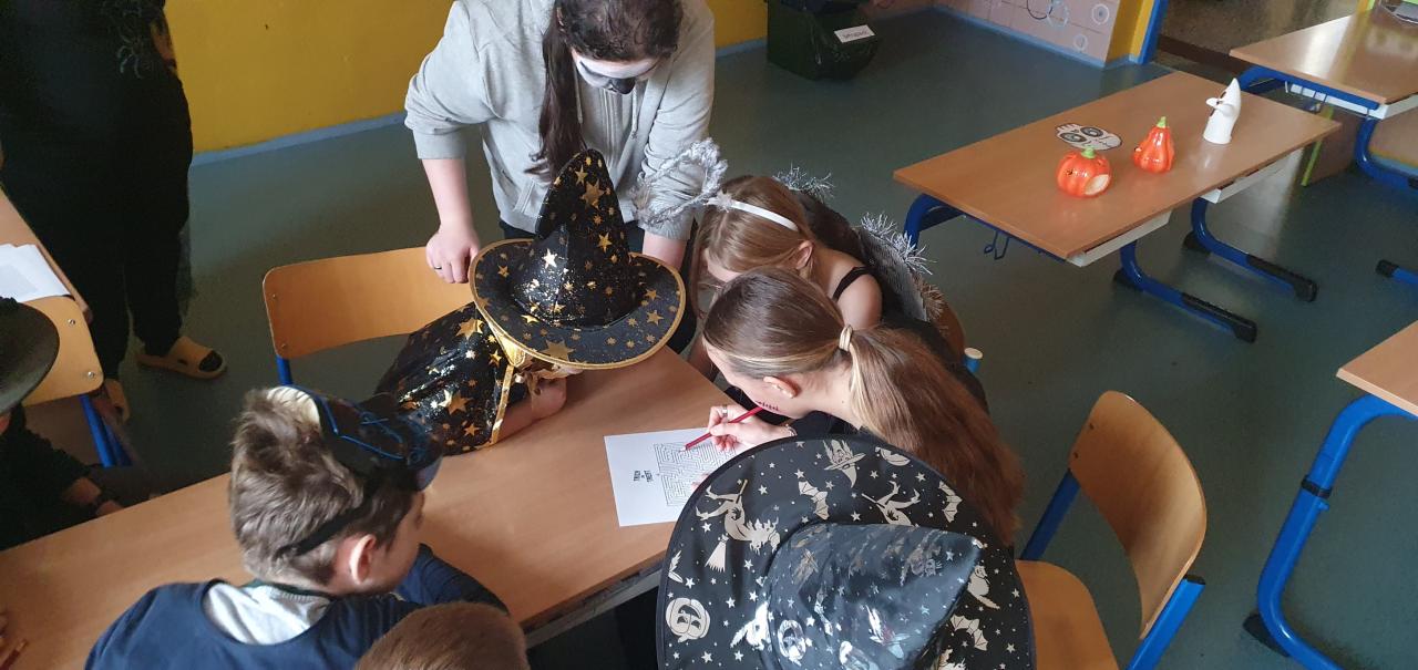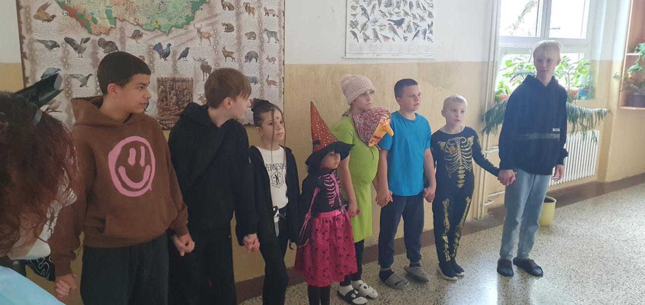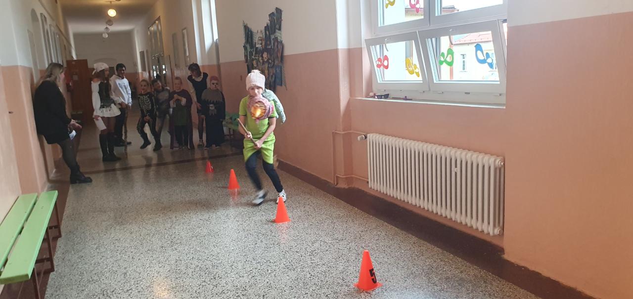Na stanovištích žáci čelili pestré škále aktivit – od zkoušení paměti na předměty schované pod dekou, přes míření míčky do otvorů v dýni, až po hledání skrytých zlatých cihliček. S velkým nadšením se pustili do poznávání strašidelných zvuků, řešení hádanek či luštění šifer. Nechyběla ani překážková dráha, kterou museli dva spoluhráči zdolat s nohama svázanýma k sobě, slalom na koštěti nebo skákání v pytli kolem kuželu. Každá aktivita prověřila týmovou spolupráci, odvahu i rychlost. Všechny týmy si vedly skvěle.