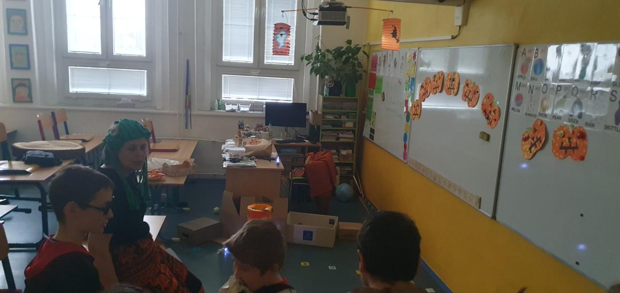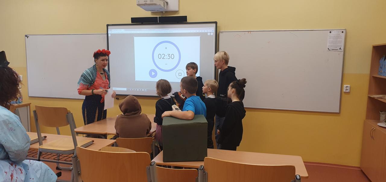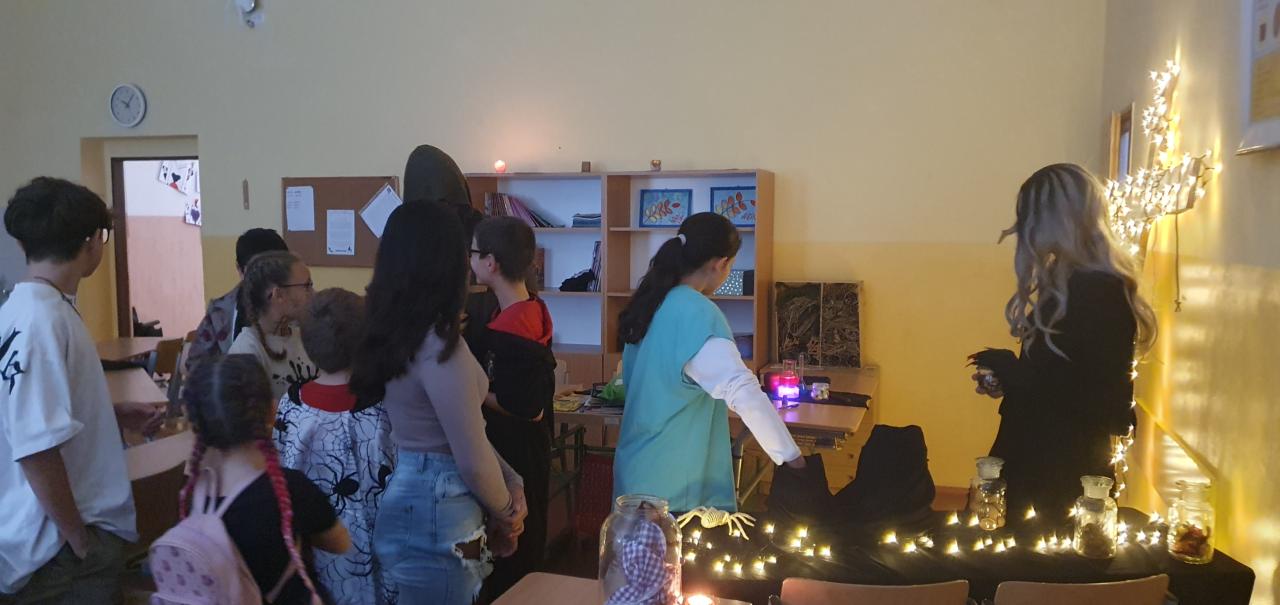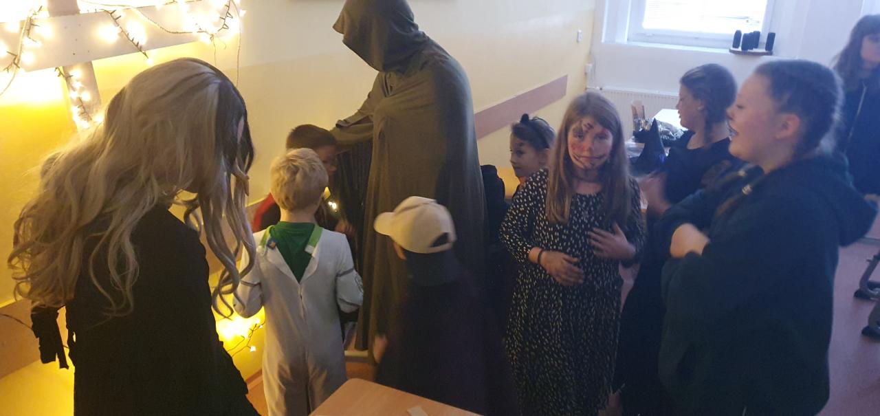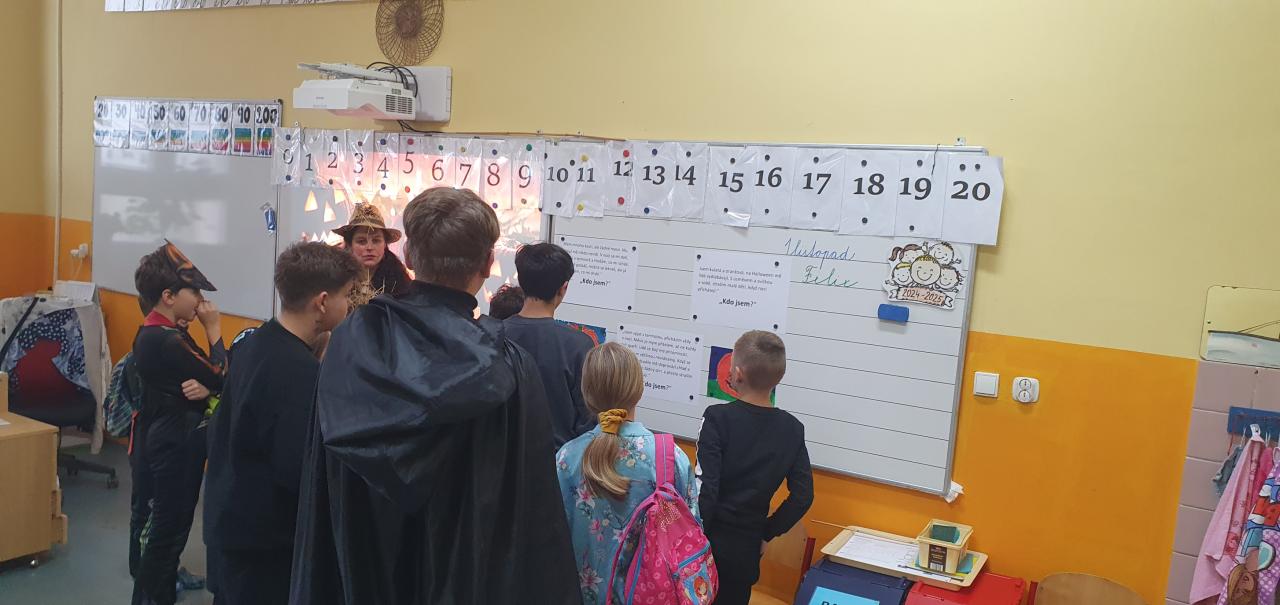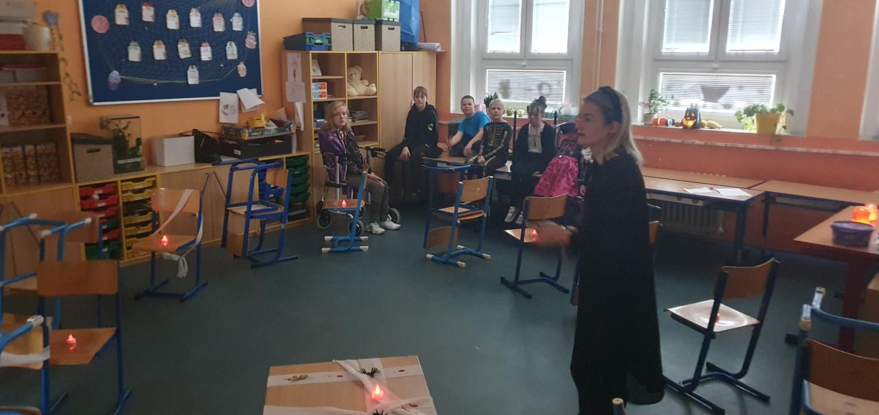 Na stanovištích žáci čelili pestré škále aktivit – od zkoušení paměti na předměty schované pod dekou, přes míření míčky do otvorů v dýni, až po hledání skrytých zlatých cihliček. S velkým nadšením se pustili do poznávání strašidelných zvuků, řešení hádanek či luštění šifer. Nechyběla ani překážková dráha, kterou museli dva spoluhráči zdolat s nohama svázanýma k sobě, slalom na koštěti nebo skákání v pytli kolem kuželu. Každá aktivita prověřila týmovou spolupráci, odvahu i rychlost. Všechny týmy si vedly skvěle.