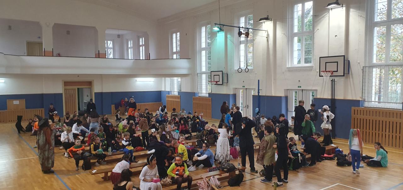Po absolvování všech stanovišť jsme se znovu sešli v tělocvičně, kde proběhla promenáda kostýmů. Žáci mohli obdivovat pestrou škálu nápaditých převleků, které si jejich spolužáci připravili. Porotou byly vybrány tři nejlepší kostýmy, které byly následně oceněny. Poté došlo k vyhlášení výsledků celého dne – byly sečteny body ze všech stanovišť a pět nejlepších týmů si odneslo sladkou odměnu.