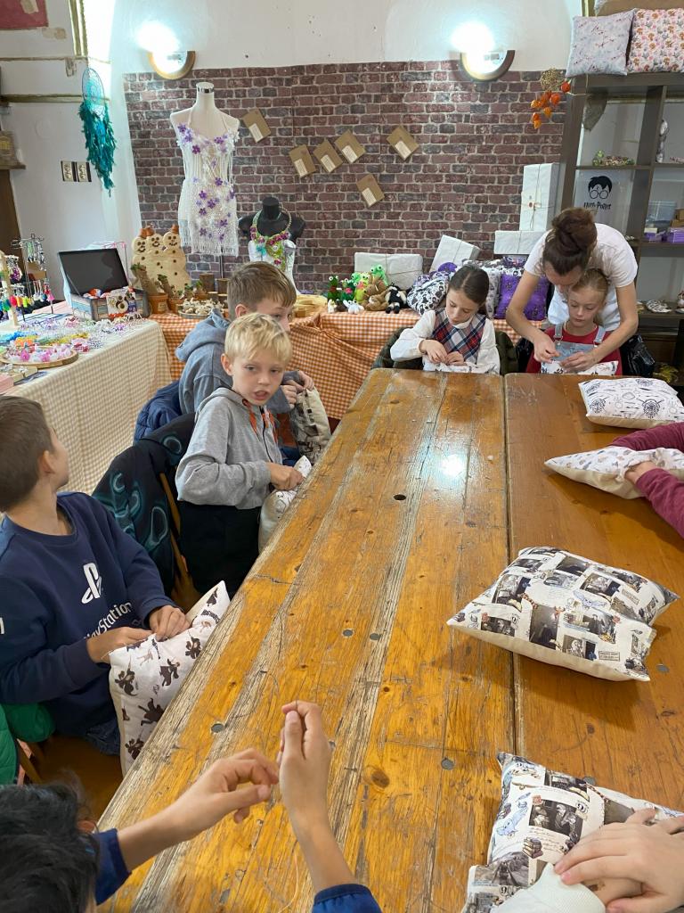 Tvoření probíhalo v prostorné místnosti, která byla proměněna do podoby Bradavic. Děti měly možnost vybrat si z různých látek a vzorů, které připomínaly známé postavy a symboly z knih a filmů o Harrym Potterovi. V rámci dílen se děti seznámily s různými řemeslnými technikami, například šitím. Atmosféra byla plná radosti a kouzel, a všichni odešli s polštářem, který bude památkou na tento nezapomenutelný den.