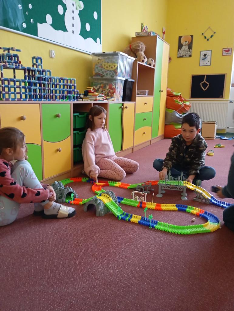 V družině jsme se věnovali také poznávání zimní přírody – povídali jsme si o ledních medvědech, jejich životě a prostředí, ve kterém žijí. Naše zážitky jsme přenesli do výtvarné tvorby, kde vznikla spousta krásných prací se zimní tématikou. Zajímavým zpestřením byla i návštěva knihovny, kde jsme se zúčastnili oblíbených deskorátek. Leden byl plný zábavy, poznávání i společných chvil, na které budeme rádi vzpomínat.