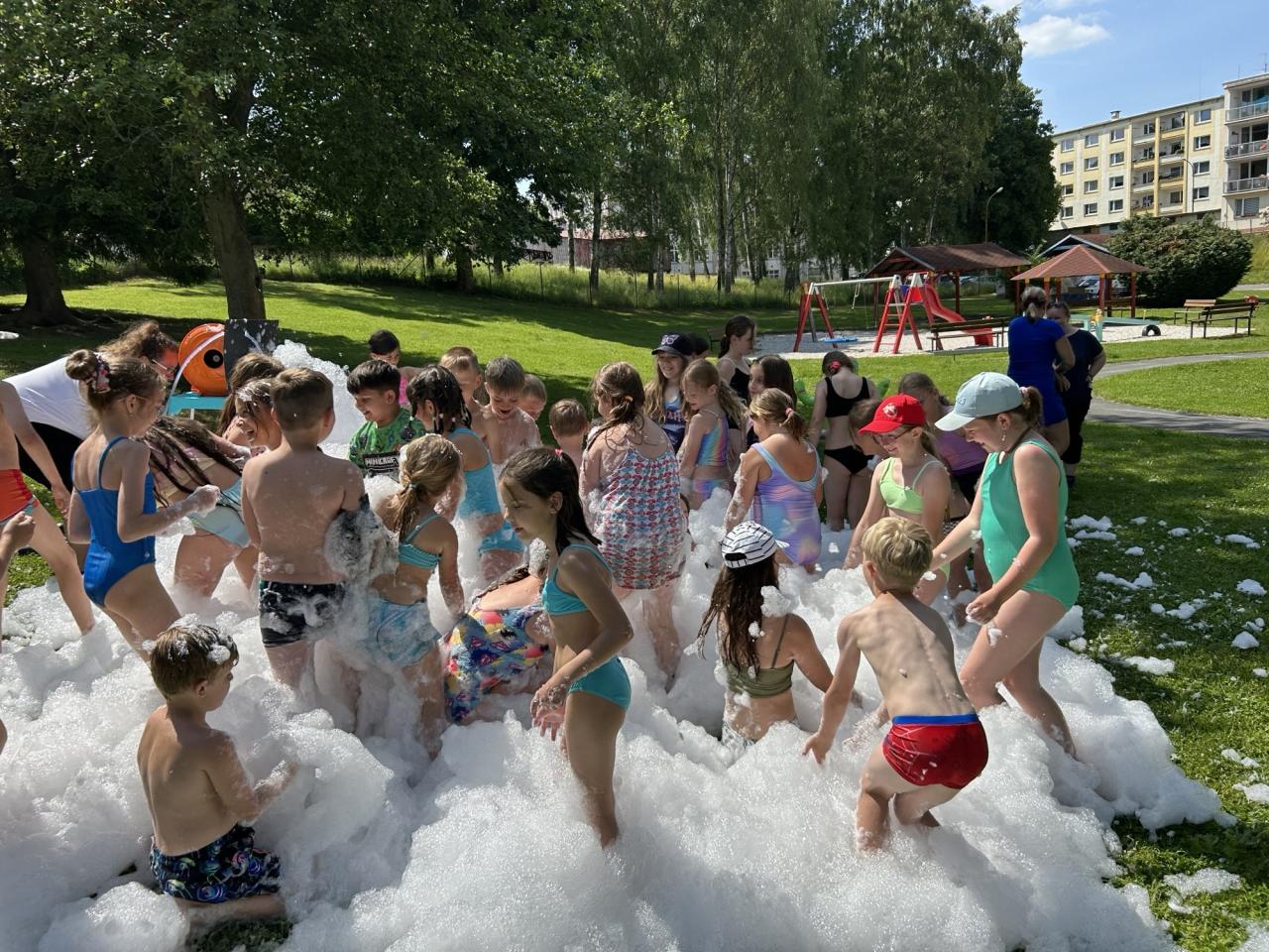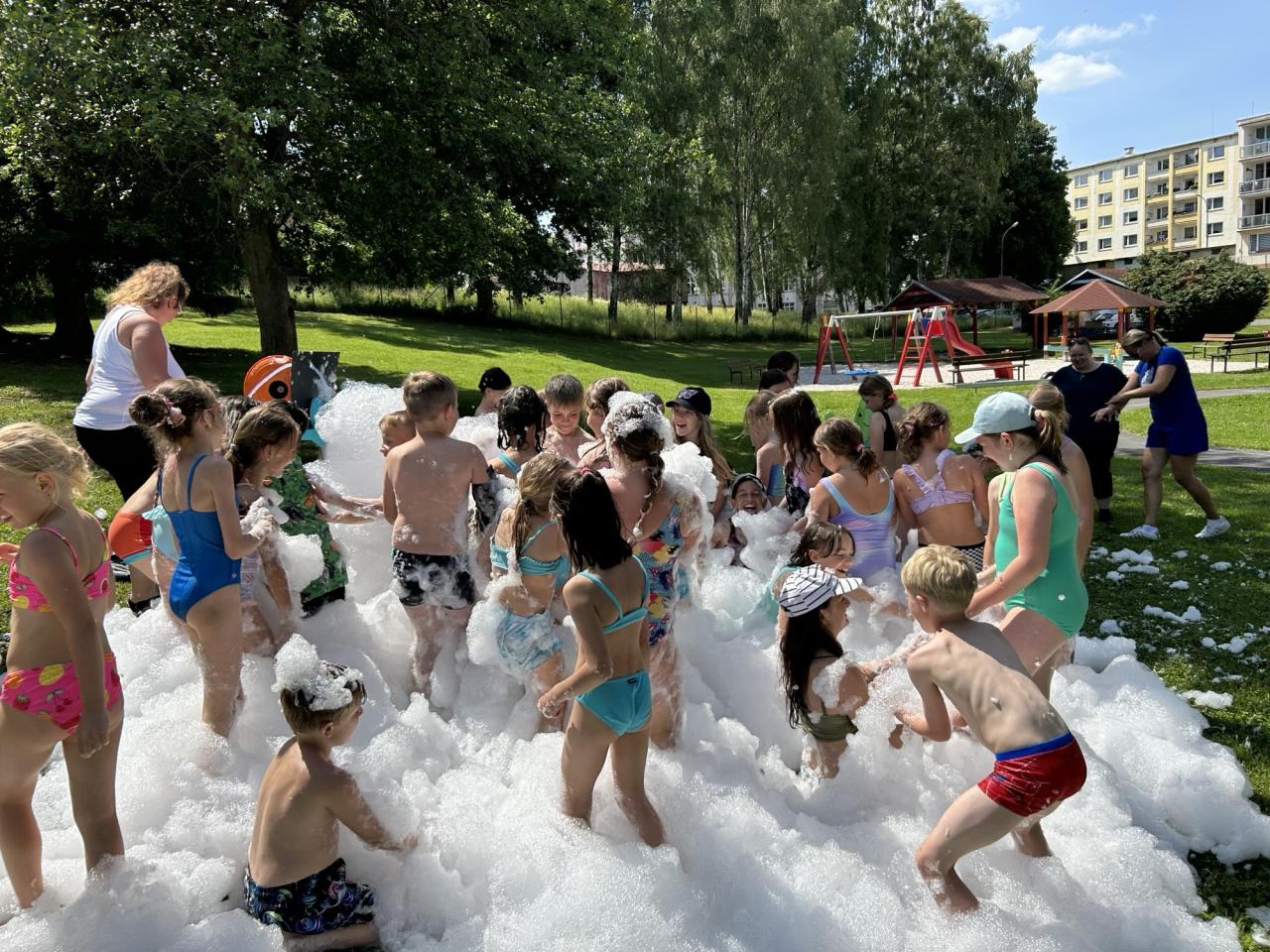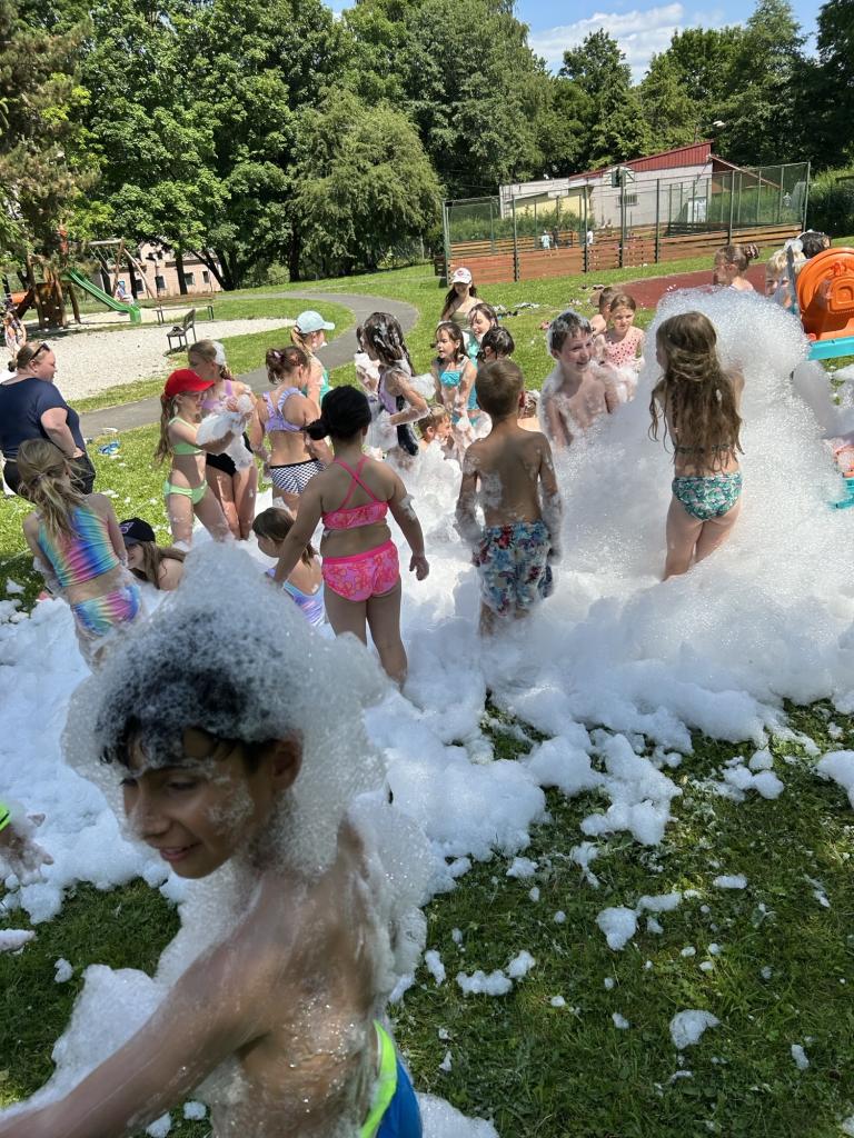 Akce spojila několik družin z okolí a stala se skvělou příležitostí, jak zakončit školní rok a zároveň se znovu setkat s kamarády z jiných družin. Děti si užívaly den smíchu a překvapení. Na programu nechyběly venkovní hry, pořádná osvěžující sprcha včetně pěny, která se stala jedním z největších taháků odpoledne.