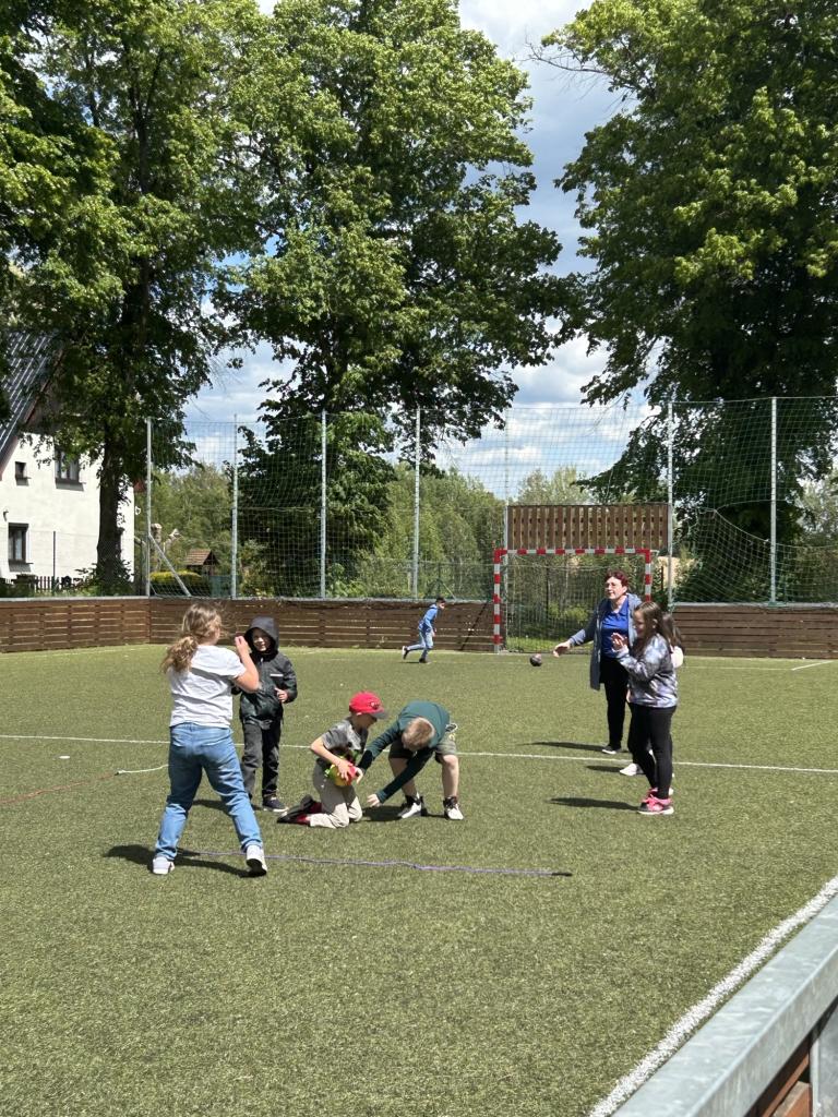 Děti si užívaly hry na hřišti, běhání, kreslení křídami i různé sportovní soutěže. Společně jsme se radovali z rozkvetlé přírody a sbírali inspiraci pro tvoření.