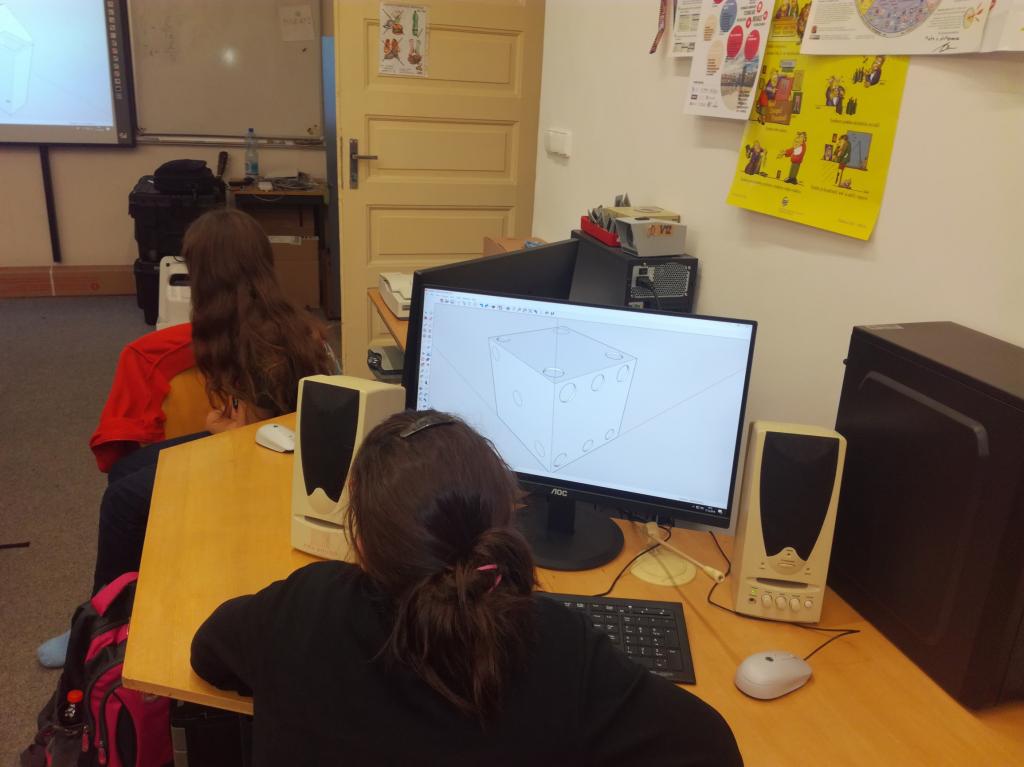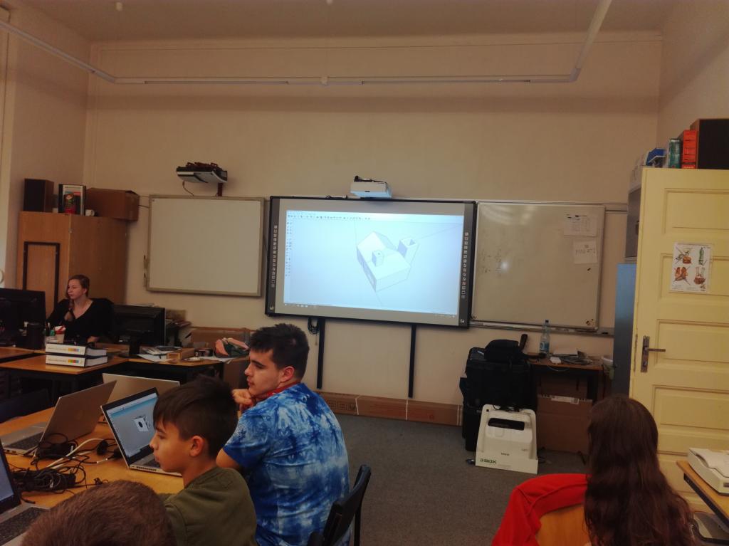 Po příchodu na ZČU jsme byli panem proděkanem přivítáni a zahájili práci 53D modelací na počítačích nejprve jednoduššího tvaru hrací kostky, a poté mohli žáci modelovat představu svého vysněného domu.