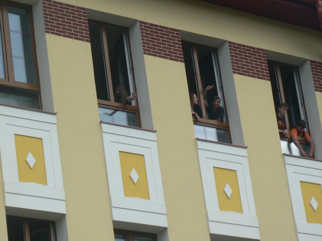 Jakýmsi vyvrcholením byl nácvik evakuace budovy při vyhlášení požárního poplachu. A aby to nebyla úplná legrace, ve 3. patře budovy se nečekaně (věděli o tom jen zasvěcení) objevil hustý dým, ve kterém nebylo vidět "na špičku nosu".