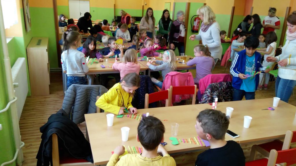 ve školní jídelně. Nechybělo ani kreativní tvoření, každý žák si vytvořil pěknou rybičku.