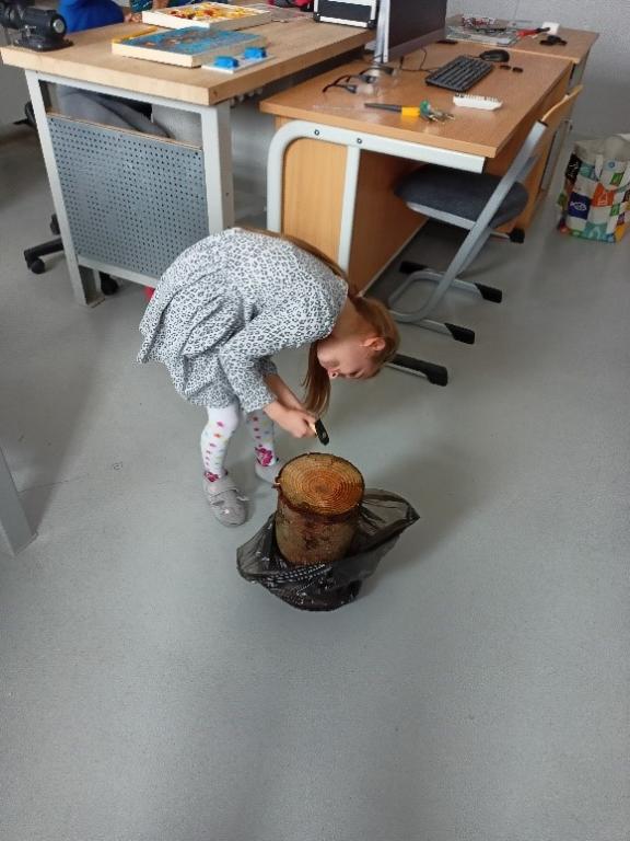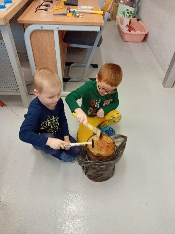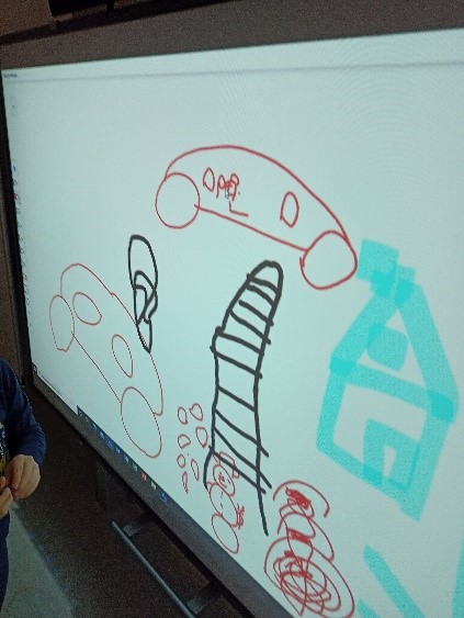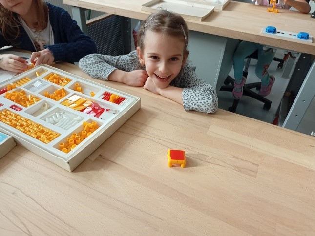 Seznámily se s nářadím a vybavením dílny, a již v tomto útlém věku byly schopné poznat a vysvětlit, k čemu se používá např. pila, vrtačka, pilník, kladivo, kleště a další. Vyzkoušely si práci se 5stavebnicí, kde měly za úkol postavit židličku, stoleček nebo potrubí. S využitím reálného HT potrubí spojovaly trubky, také zatloukali hřebíky do špalku, nebo si vyzkoušely aku vrtačku. Děti byly velmi šikovné, zručné a kreativní a jejich výrobky odpovídaly zadání a jejich představám. Nakonec každé dítě nakreslilo s využitím6 interaktivní tabule obrázek. Vyčleněný čas utekl jak voda a děti strávily dopoledne pro ně netradičním a zajímavým způsobem.                               789
