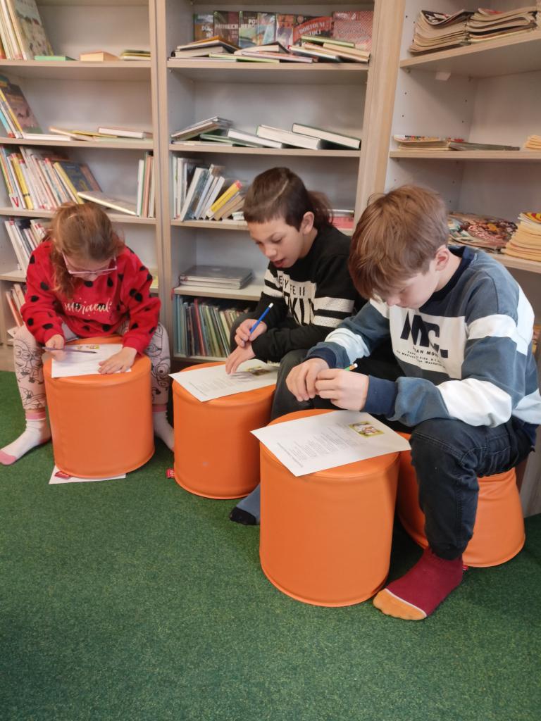 Pozornost žáků při čtení byla následně prověřena samostatným vyplňováním pracovního listu k textu, ve kterém měli odpovídat na otázky, které s textem souvisely. Společně s žáky paní knihovnice zkontrolovala správné odpovědi.