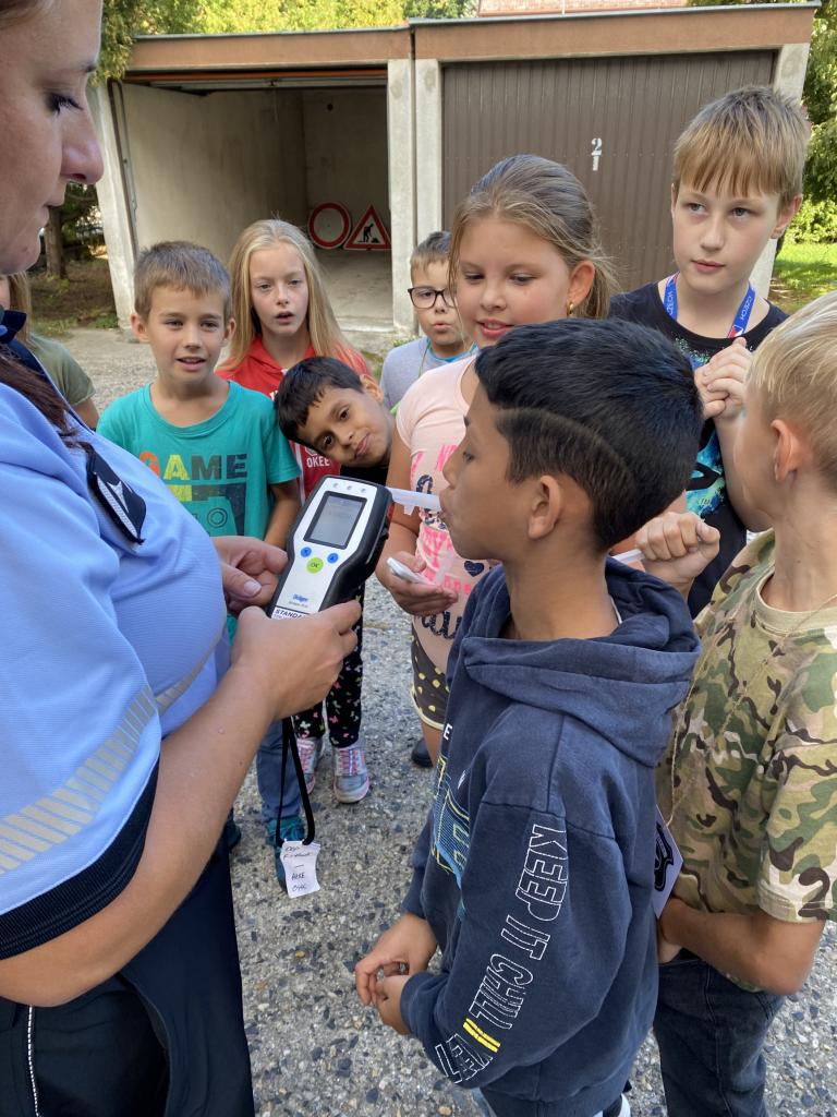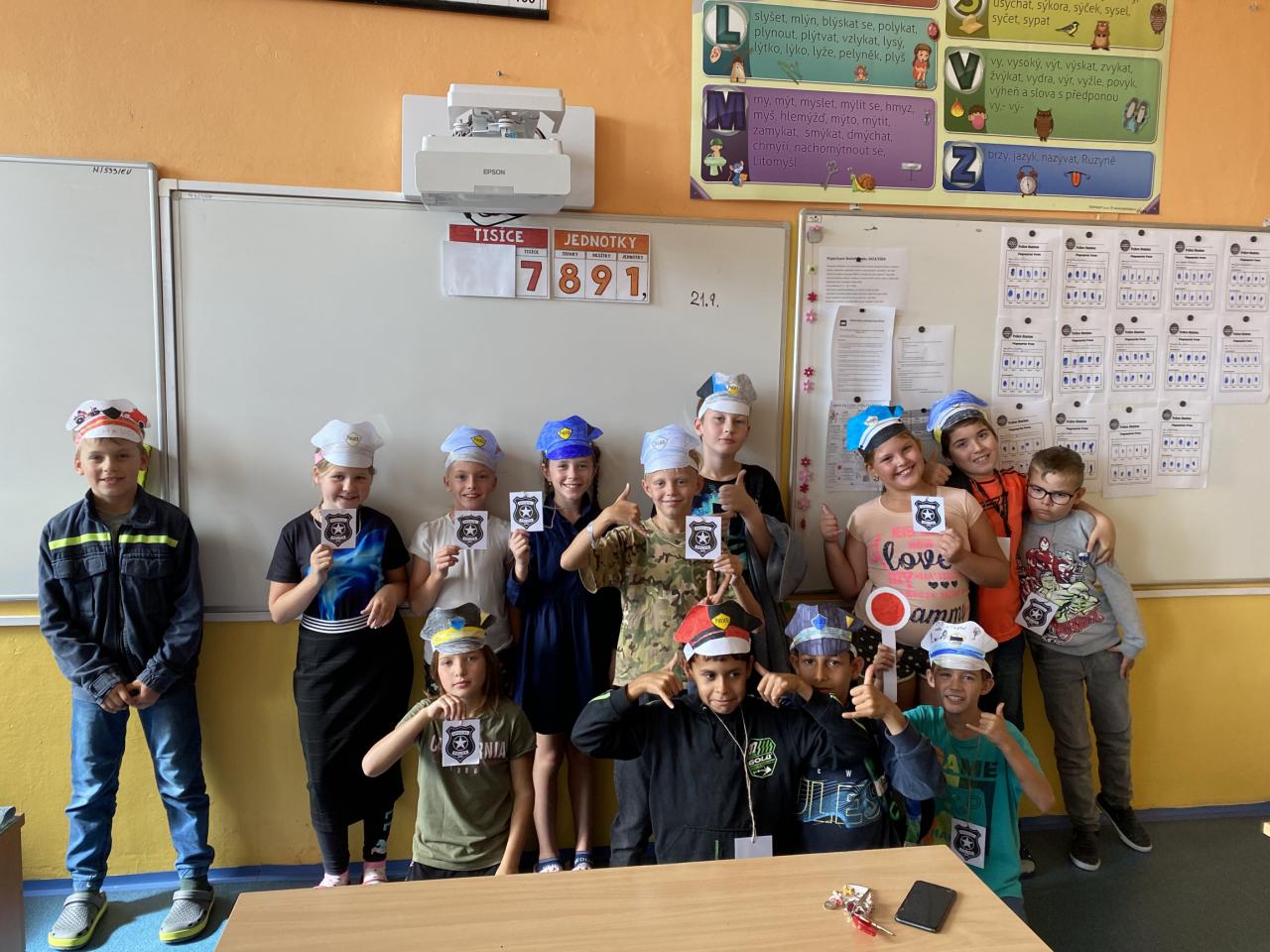 První akcí třídy IV.A byla ve čtvrtek 21.9.2023 návštěva policejní stanice v Plesné, kde nás provedly dvě policistky. Jednalo se o vyhodnocení programu AJAX. Policistky ochotně dětem povyprávěly o práci policie a poučily nás o bezpečnosti a správném chování v různých situacích. Děti si vyzkoušely, jaké je to být zločincem, který je na nějakou chvíli vězněn za mřížemi místního oddělení Policie ČR. Následovala ukázka opasku, na kterém jsme mohli vidět zbraně, pouta a další používané prostředky. Po nějaké době jsme se přesunuli na dvůr policejní stanice a vyzkoušeli jsme si neprůstřelnou vestu, reflexní vestu dále jak je těžké foukat do testeru na alkohol a jak vypadá test na drogy. Posledním překvapením byla možnost prošmejdit si policejní auto, kde se také policie s námi stylově rozloučila - puštěním majáků a sirén.