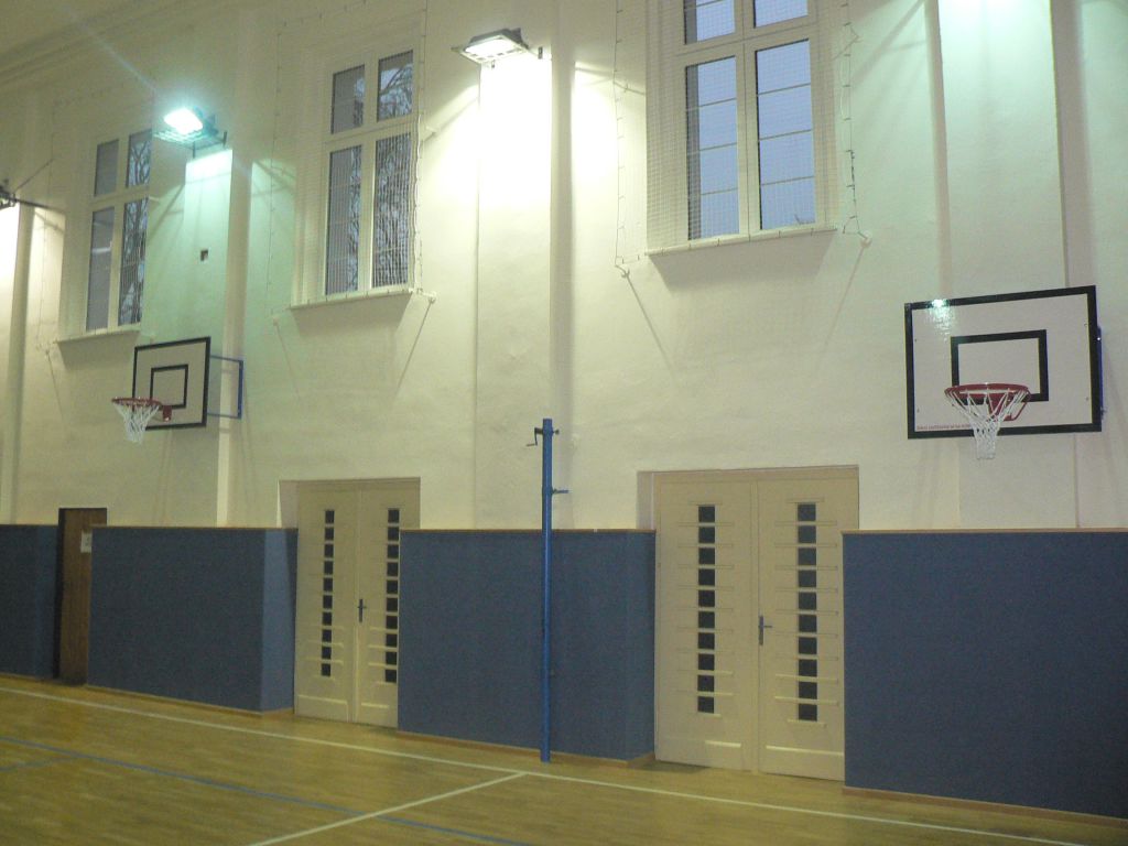 V pondělí 19. 12. 2016 nám do tělocvičny instalovali nové koše na basketbal! V úterý jsme si je na hodinách tělocviku hned vyzkoušeli! Hřiště sice nemá regulérní velikost, zato házení na koš zvládnou opravdu všichni. Jak je to možné? Dvojice košů jsme umístili do dvou výšek - ta první, ve správné výšce, je ukotvena tak, že okraj obroučky je 3,05 metru nad zemí. Druhá dvojice je ukotvena s obroučkou ve výšce 2,6 metru - to proto, aby si mohli zahrát i ti menší.