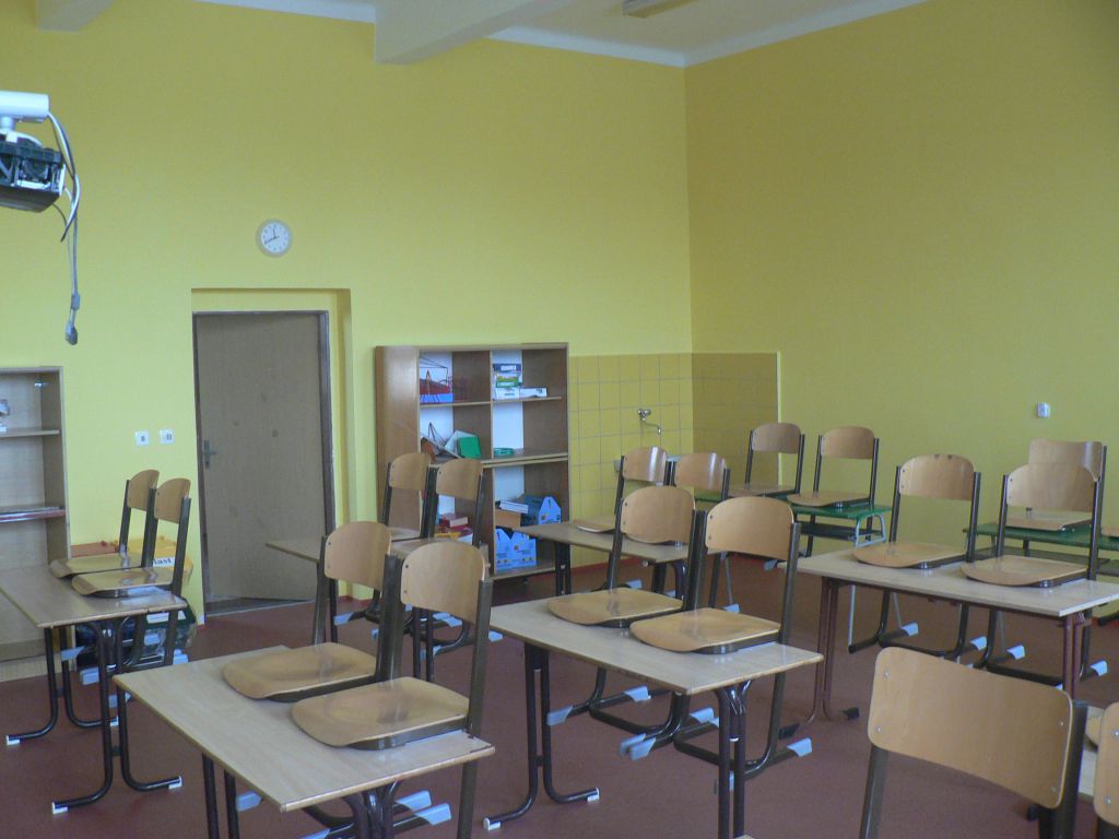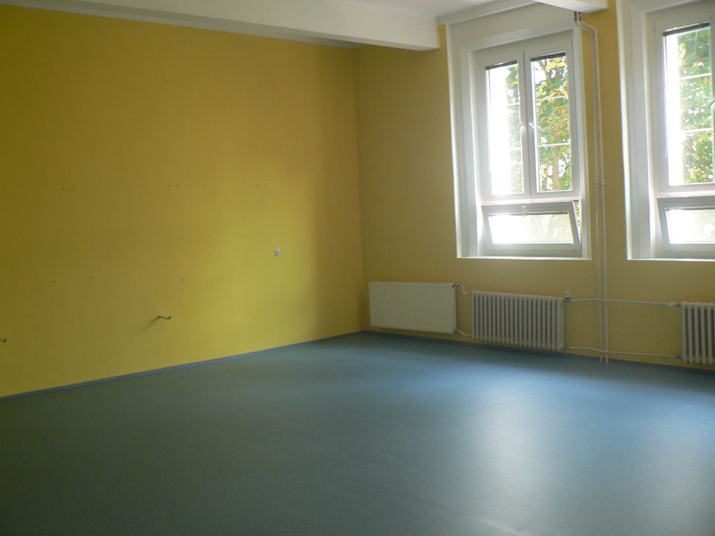 - včetně výměny podlahové kritiny. Do učebny matematiky též vstupujeme novými dveřmi.