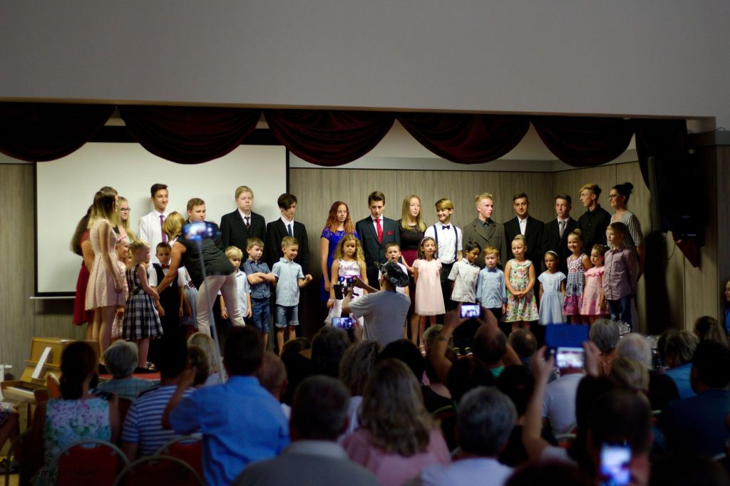 paní učitelky, děti dostaly drobné balíčky (hlavně dobroty) z rukou pana starosty, pamětní album od paní učitelky, a medaili, která již byla důkazem toho, že jsou to vlastně prvňáčci. Pak z pódia, za doprovodu deváťáků, děti odešly.