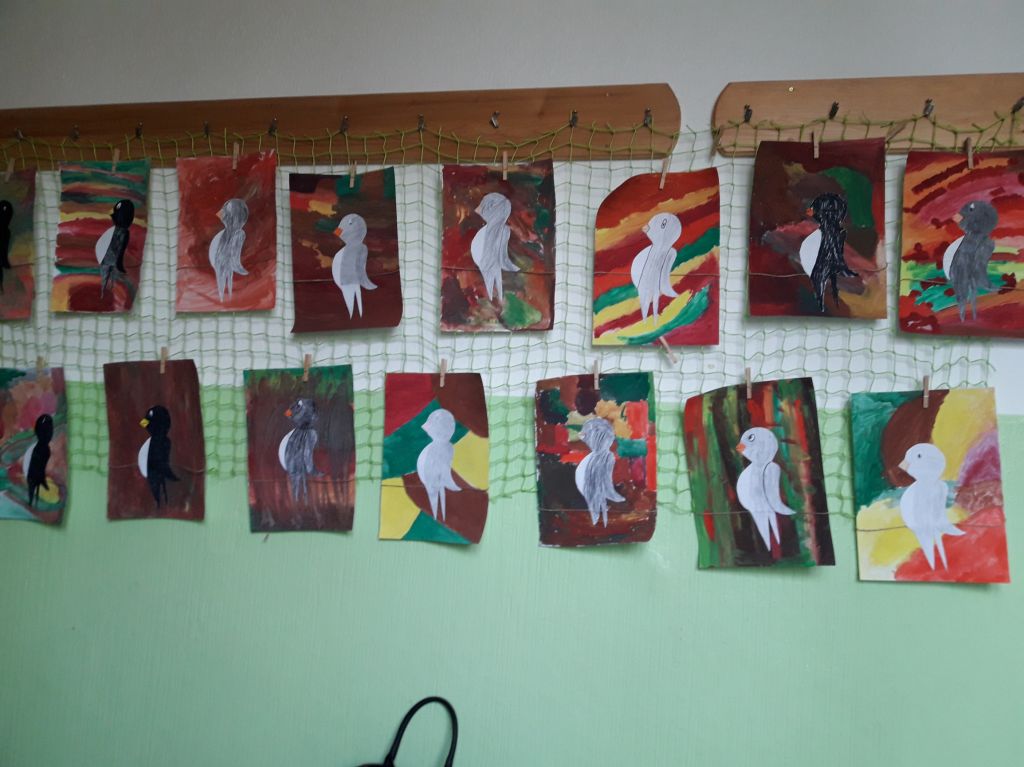 V měsíci říjnu jsme pokračovali s tématem podzimu. K naší tvorbě nás inspirovaly podzimní listy. V druhé polovině měsíce jsme se věnovali "Halloweenu". Seznámili jsme se s historií, tradicemi a současnou podobou tohoto anglosaského svátku. Namalovali jsme si dýně a vyrobili halloweenské masky. Toto téma vyvrcholilo v listopadu. Halloweenskou párty s kostýmy. Nechybělo občerstvení, tradiční přípitek, představení jednotlivých masek, hra i tanec.