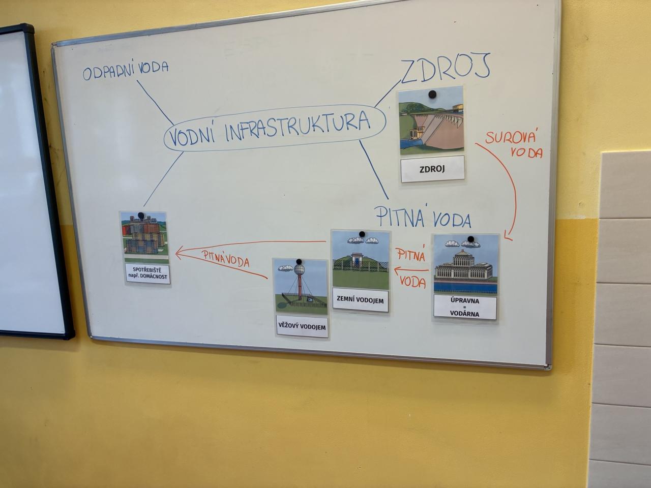 Starší žáci z 8. ročníku se pak hlouběji seznámili s vodní infrastrukturou – zkoumali, odkud voda pochází, jak se čistí a upravuje, jak se dostává až k nám domů a co se s ní děje poté, co odteče do kanalizace. Dozvěděli se také, co znamenají pojmy jako vodné a stočné a proč není samozřejmostí mít kdykoli k dispozici čistou vodu. Díky interaktivním modelům si všichni mohli jednotlivé principy sami vyzkoušet a pozorovat, jak voda v přírodě i v technických systémech „putuje“.