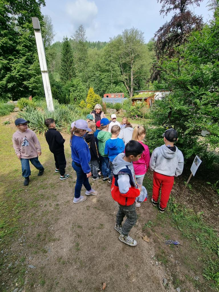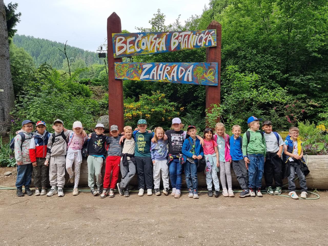 Dne 10. 6. si v této přírodní zahradě žáci 1. třídy užili krásné pohodové dopoledne. Náš vzdělávací program měl název „Z pohádky do pohádky“. Hned na začátku děti poznávaly pohádku podle písně. Ta poslední, O Šípkové princezně, nás pak celým programem provázela. Jenže na cestě k vysvobození spící princezny museli žáci plnit nejrůznější úkoly: přejít potůček po lávce, v trávě najít dřevěné různě barevné kostičky a navléknout na provázek podle barev, poznávat rostliny podle stonku a květu, třídit semínka podle druhu. A pak už zbývalo najít princeznu u šípkového keře a vysvobodit ji. A proto, že se vše podařilo, všichni se pak mohli za odměnu vyřádit u motorického padáku.