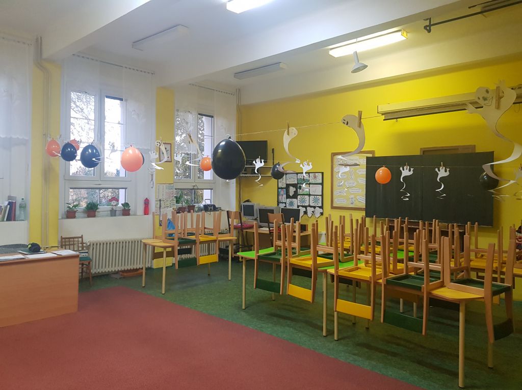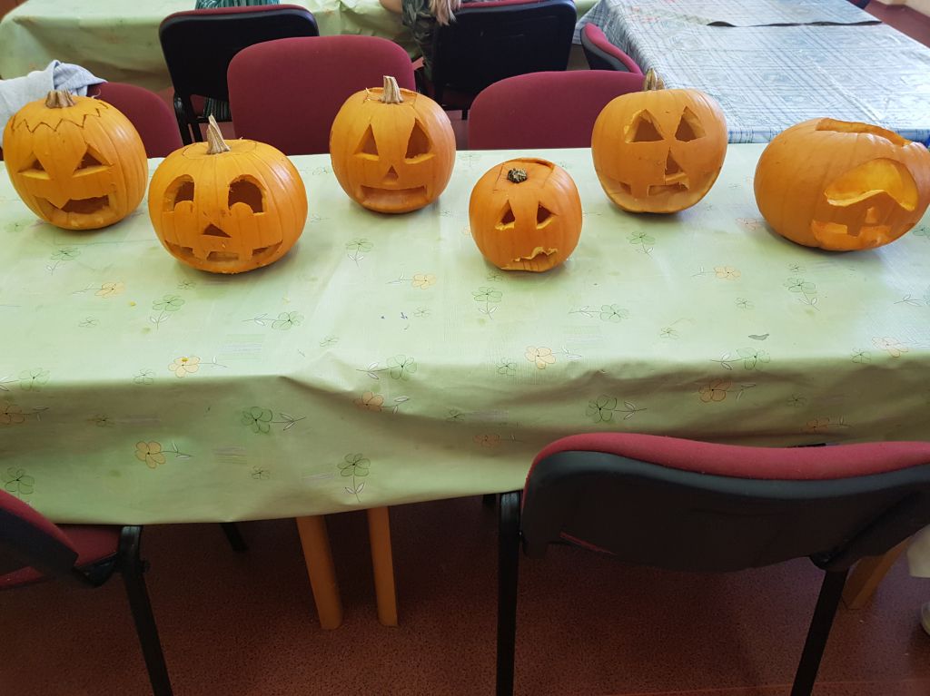 k počasí a předcházení nemocem. Výrobky dětí jsme vystavili na nástěnce před družinou, kde si je mohli rodiče prohlédnout. Tento měsíc jsme zakončili Halloweenskou párty, kde jsme pro děti