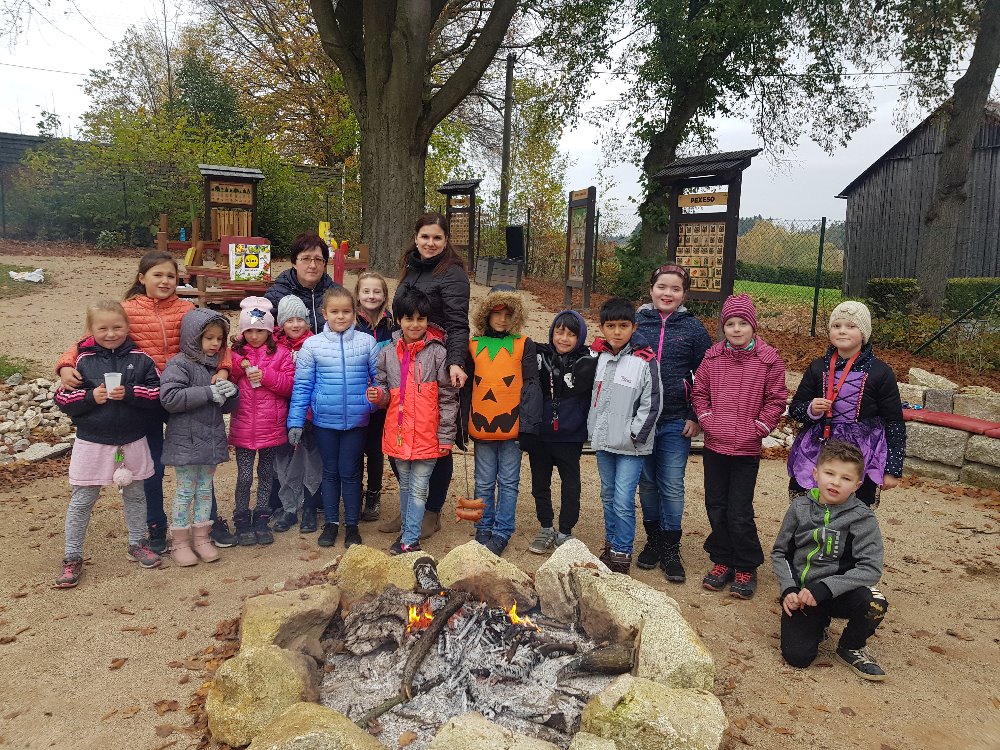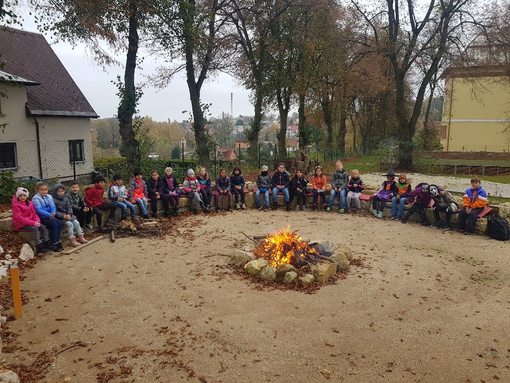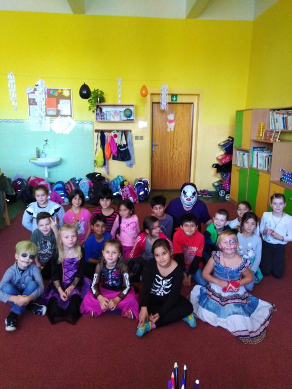 …byl krásný a rychle utekl. Nezvykle pěkné říjnové počasí nás ještě stále zvalo do přírody, a proto jsme si mohli užít dostatek sluníčka při míčových a pohybových hrách na školním hřišti. Přesto jsme si našli čas na naše oblíbené vyrábění. Zlatavé listí nám bylo inspirací pro mnohé výtvory s přírodní tématikou. Ale nejvíce jsme se stejně těšili na Halloween a Halloweenskou párty včetně soutěží a pečení buřtů. Různými
