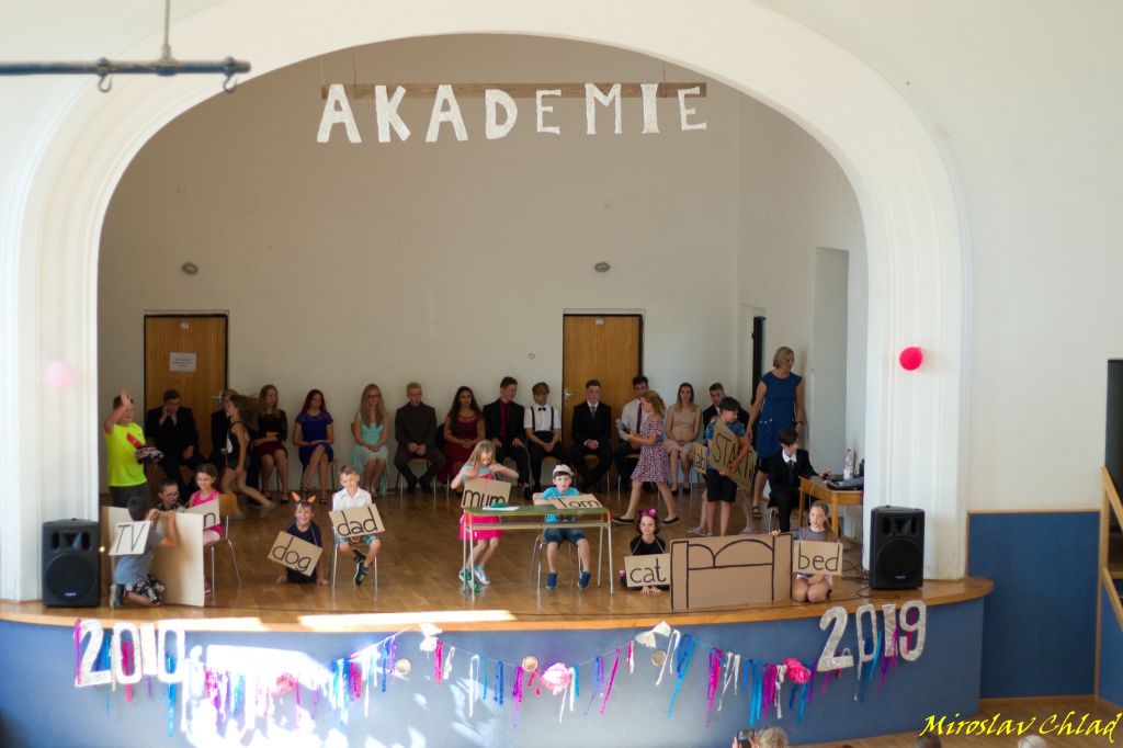 V úterý 25. 6. 2019 jsme se opět sešli v tělocvičně naší školy na, již tradiční, akademii. Byla to další možnost, jak poznat práci žáků, pedagogů a vlastně celé školy. A že přišlo zvědavců! Kromě rodičů a dalších osob odpovědných za výchovu nás navštívila nejen celá řada dalších příbuzných vystupujících žáků, ale i naši další žáci, kteří již odešli na střední školy.