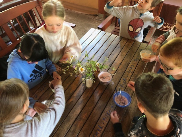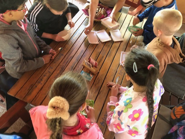 Druhá třída měla na exkurzi v Bečově program s názvem Jedlé květy. Nejprve jsme se dozvěděli názvy částí květu, jeho funkci v rostlině a zahráli si na různé opylovače. Následovala prohlídka části zahrady a ochutnávka jedlých květů. Nejlepší částí ovšem byla příprava svačiny. Skládala se z chleba s tvarohem, který byl ozdobený jedlými květy podle vlastního výběru.
