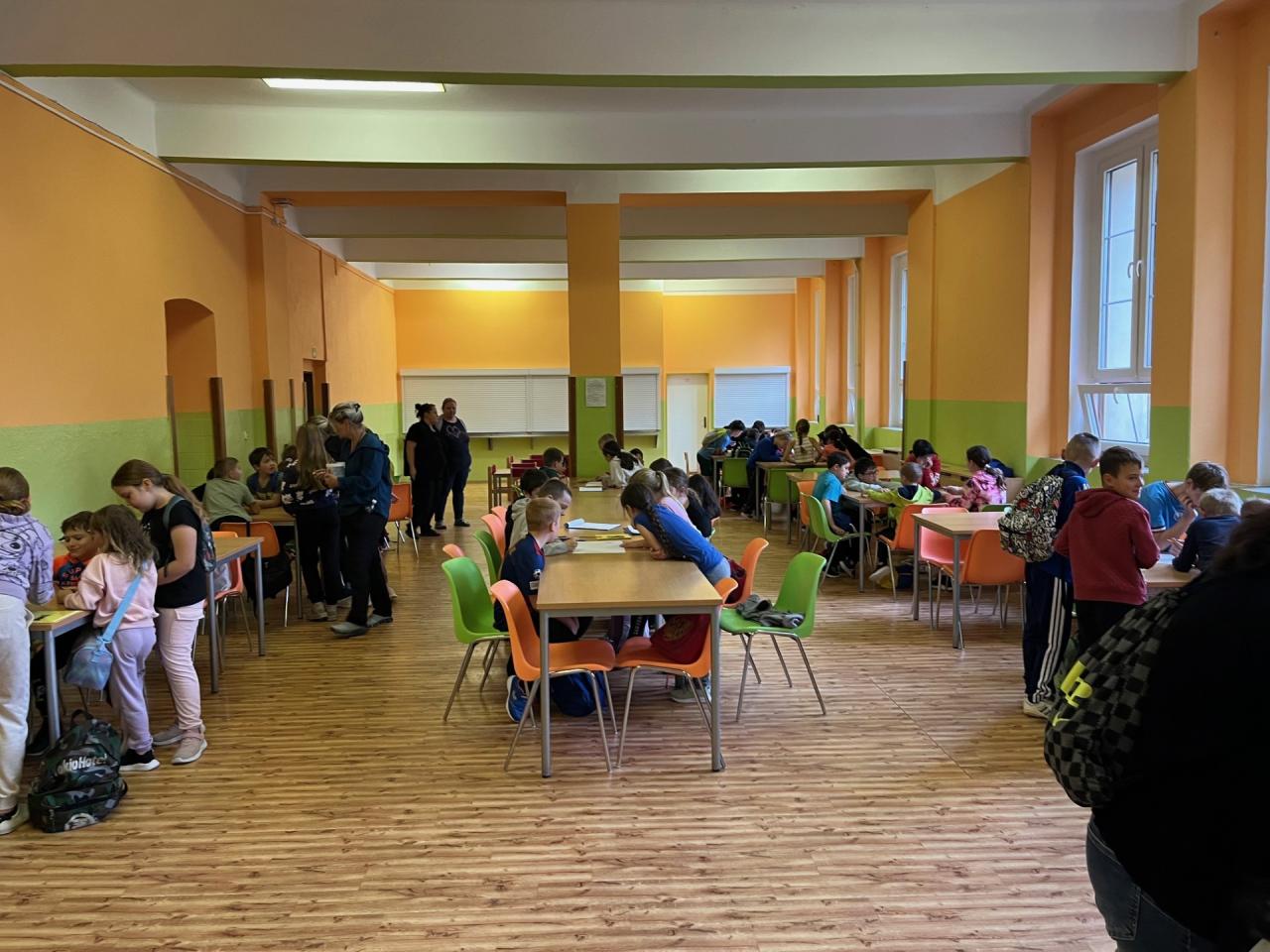 Prvostupňoví žáci se natěšeni, odpočati po podzimních prázdninách a plni očekávání, nejprve shromáždili ve školní jídelně. Zde došlo k rozdělení do družstev, ta byla obsazena žáky různých věkových skupin.