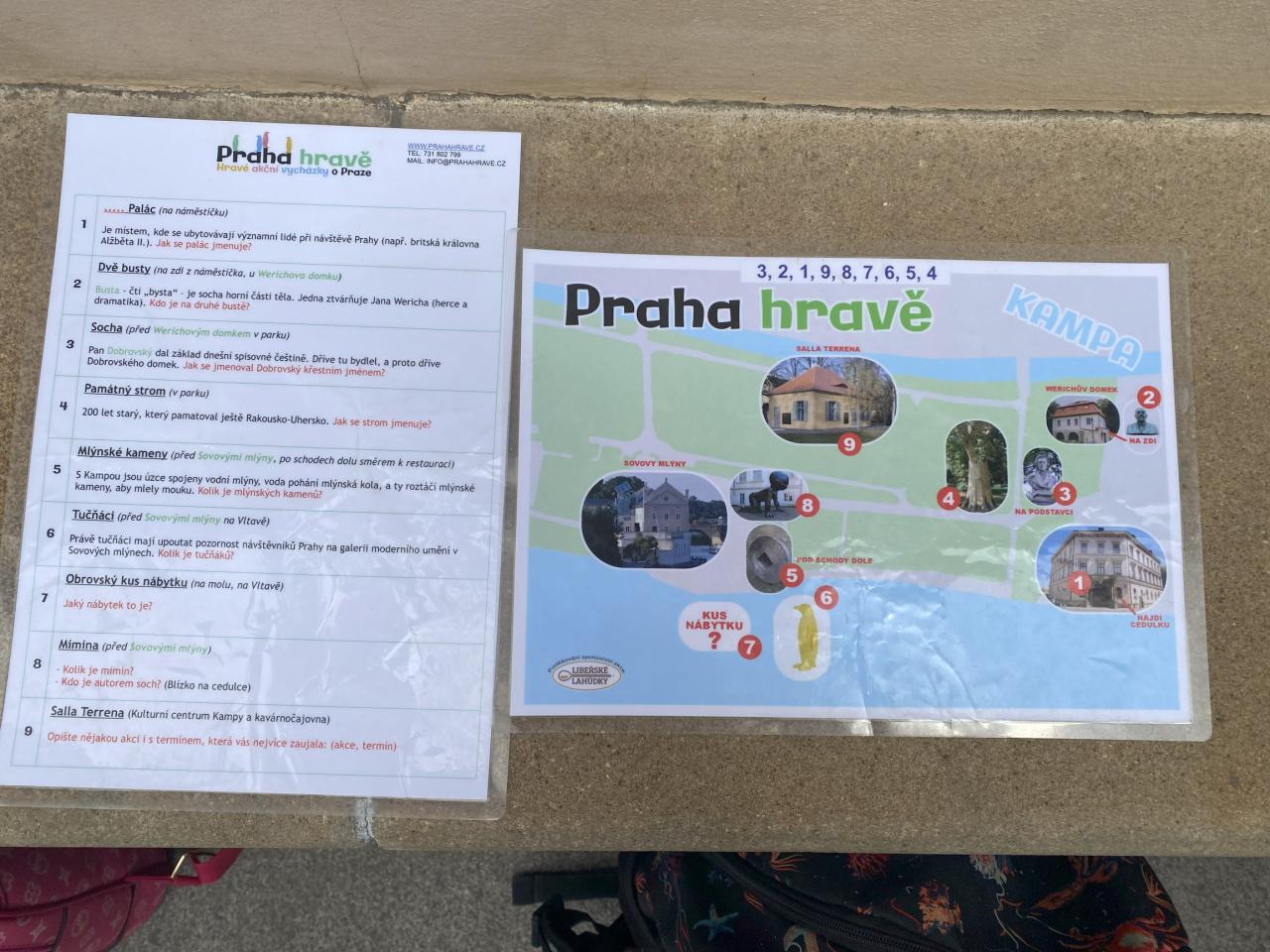 Následně jsme se přesunuli na Kampu, kde nás čekala "bojovka". Každý tým dostal mapu a v parku na Kampě hledaly různá stanoviště, kde na ně čekaly úkoly. Procházka či "bojovka" byla plná smíchu, nadšení a týmové spolupráce. Po náročném dopoledni jsme se vydali na zasloužený oběd do McDonaldu. Děti si pochutnaly na svých oblíbených jídlech a sbíraly síly na další připravený program.