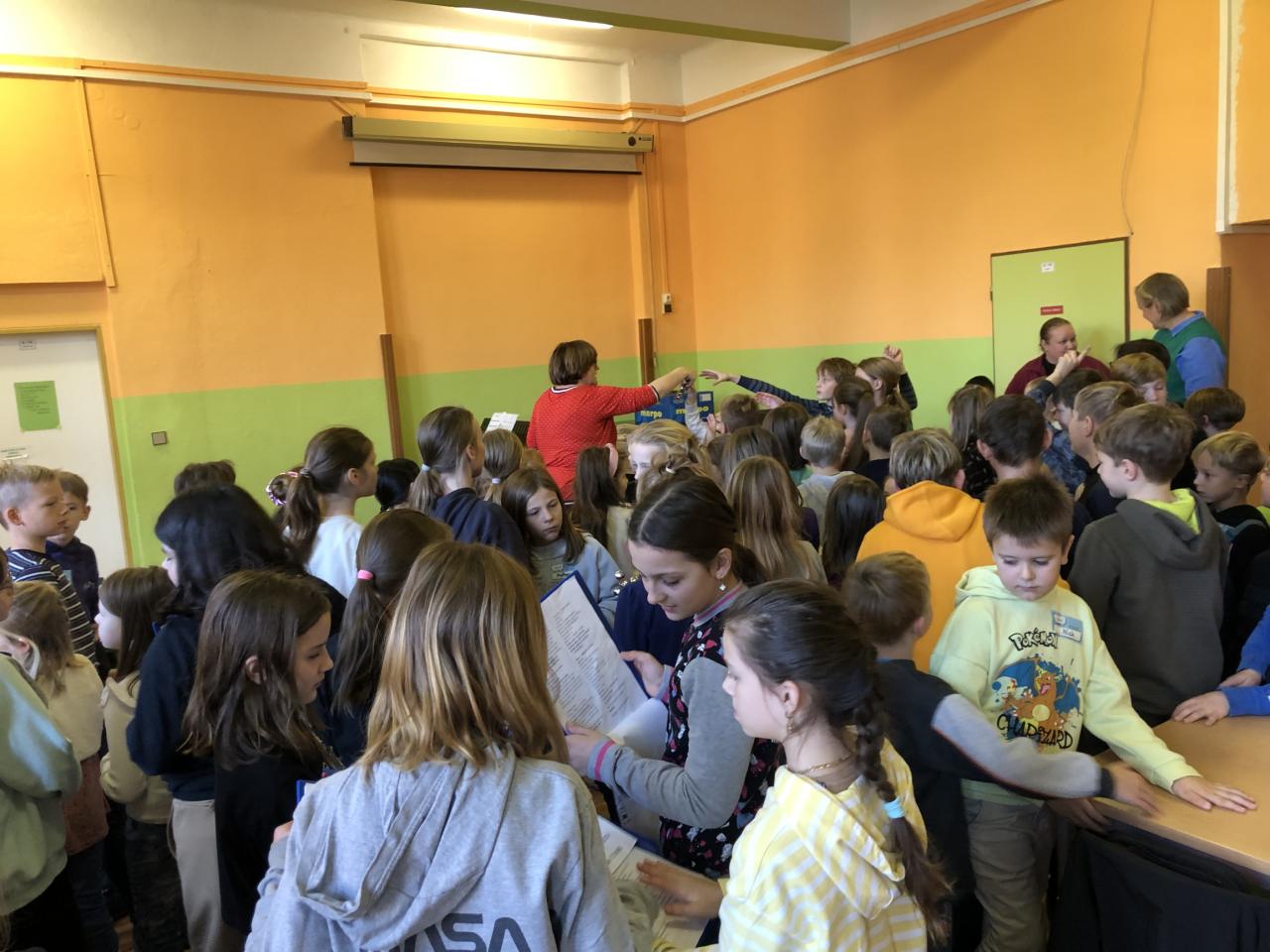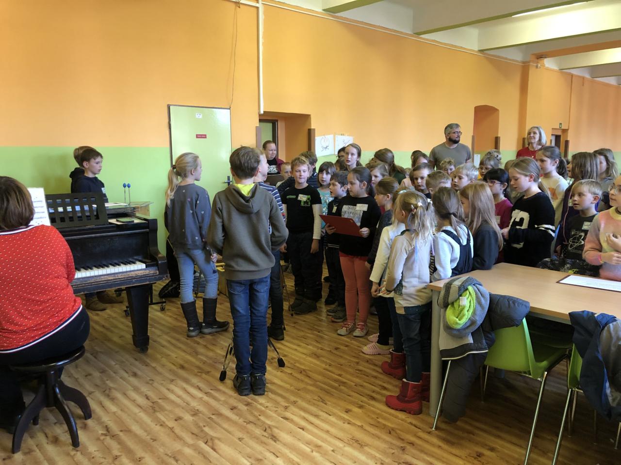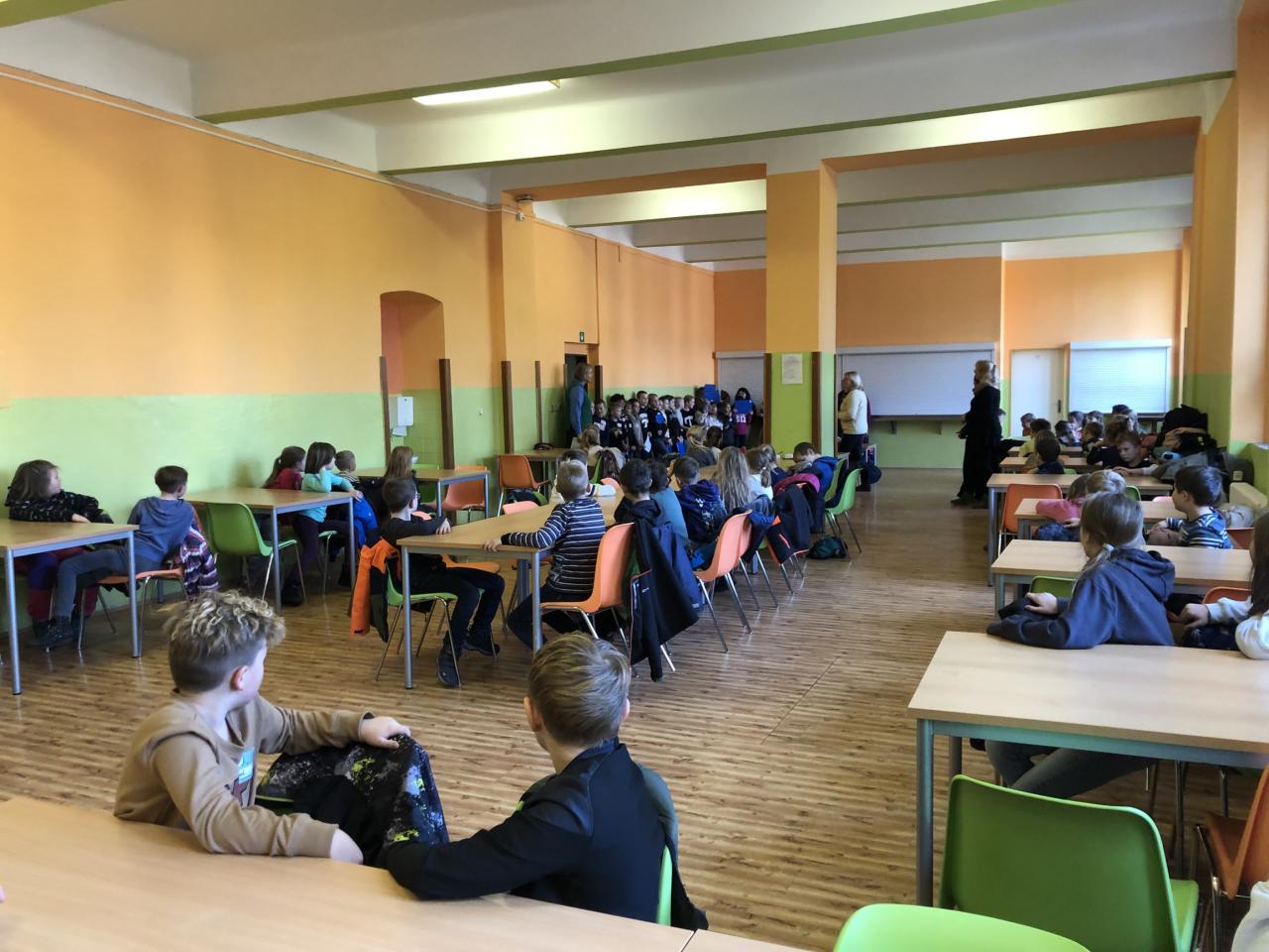 Několik týdnů jsme domlouvali, jak bude spolupráce vypadat, naše i německé děti trénovaly ve svých školách koledy, které budou prezentovat. V pondělí dopoledne se všichni poprvé sešli v naší jídelně a zkusili si koledy zazpívat společně. A kupodivu … fungovalo to. Součástí setkání byly i jednoduché aktivity za účelem vzájemného poznání.